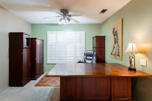 The perfect family and entertaining home! This fantastic home is situated on an oversized lot with superb Mountain View's from the front yard.Lots of parking and a big area on the side of the home to add an ADU or park an RV if HOA allows. Walk into this entertainers delight and you are greeted with a desirable open floor plan. A large sunken living room is surrounded by dining, kitchen and study areas. You can also walk right out to the covered patio which abuts the good sized pool with spa. All of this is enclosed with a solid block wall for extra privacy. The home offers a spacious primary bedroom with en-suite bath. There are two guest bedrooms which share a bath that offers a sunken tub shower combo and an atrium waiting to be planted out in your favorite plants to enhance your shower experience. The home is made for very comfortable living and is being offered turnkey furnished. This home has been lovingly maintained. The exterior grounds are landscaped to provide a low maintenance experience. There are numerous sheds to store all of your toys or extras. All of this is ideally situated in the front of the country club making it easy to come in and out. Also being located at the front of the country club gives you easy access to the onsite restaurant, fitness center, golf pro shop, pickleball and tennis courts. This is one of the homes in the community with very low HOA payments also. Don't miss out on this one. This home is immediately ready for enjoyment!