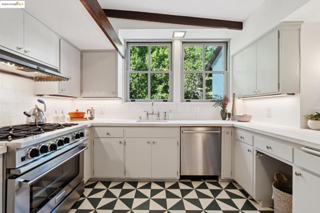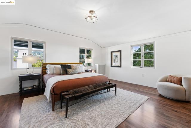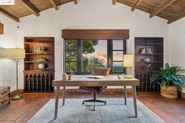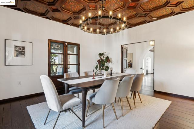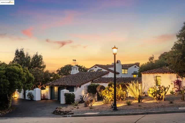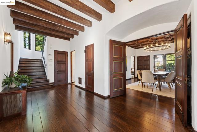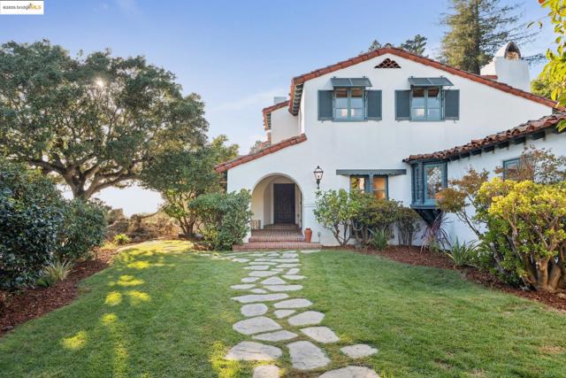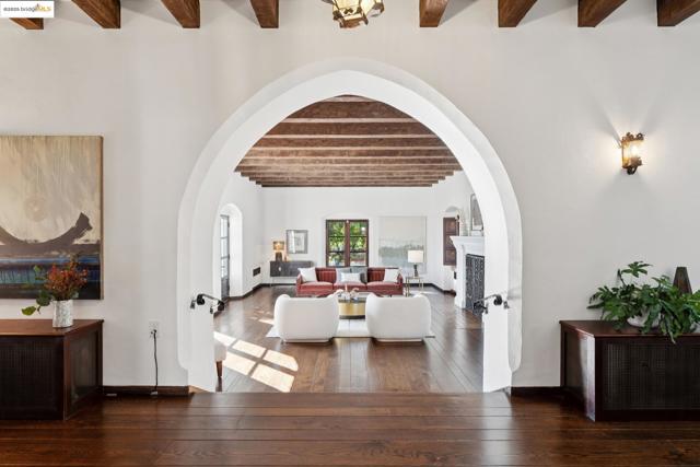 Exquisite 1928 Spanish Revival estate by renowned local architects and engineers Reed & Corlett, this grand and distinguished residence evokes an era of timeless craftsmanship and historic artistry. Perfectly poised along the Piedmont border in one of Oakland’s most prestigious enclaves, the property spans over half an acre of level, enchanting gardens amongst majestic oaks, offering serenity, privacy, and sweeping Bay views from nearly every vantage. Enjoy level-in entry to an expansive 5-bedroom, 3.5-bath primary residence, where a brilliant floor plan allows graciously proportioned formal spaces to flow effortlessly together, all bathed in natural light and enriched with period detailing throughout. A breathtaking Great Room of heroic scale, crowned by soaring hand-hewn beams, commands a sense of romantic permanence, while the formal dining room, adorned with hand-painted artesonado ceilings, showcases the artistry of its era. Beyond the main home, a private ensuite casita, artist’s studio, and convenient level-in 3-car garage complete this regal property—uniting architectural pedigree with refined livability for today’s modern lifestyle. Minutes from Montclair Village, Park Blvd, and SF/Hwy access. A rare legacy estate for generations to come.