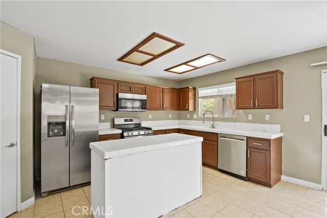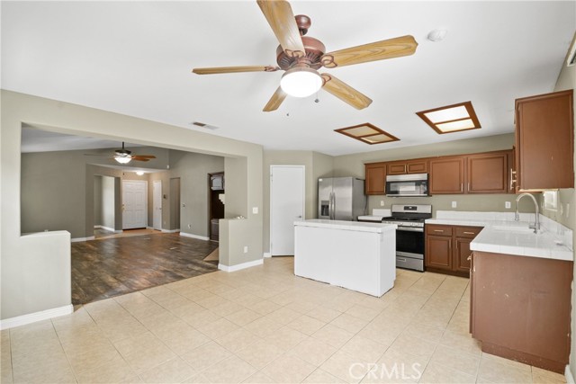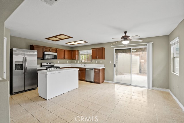 Welcome to this beautiful single-story home nestled in Victorville! Offering 3 bedrooms, 2 bathrooms, plus a versatile 4th bedroom that can be used as an office or flex room, this home is designed for both comfort and functionality. A spacious open floor plan seamlessly connects the living room, dining area, and kitchen perfect for everyday living and entertaining. The living room features a cozy fireplace for a warm and inviting atmosphere, while the kitchen boasts ample cabinet and counter space, a center island, and a layout ideal for cooking and gathering. The private primary suite provides a relaxing retreat complete with a walk-in closet. Additional conveniences include an indoor laundry room located just off the garage, a 2-car garage, and a storage shed for extra space. Step outside to a backyard designed for outdoor enjoyment, featuring a covered patio perfect for entertaining or simply relaxing in the shade.