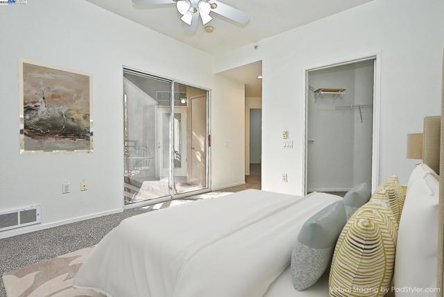 Perfectly positioned in the Parkwoods! Located on the quieter side and drenched in natural light! Main living area with southwest facing window, lighted ceiling fan, gas fireplace, display nook and glass access door to private balcony also with southwest exposure. Kitchen includes gas range, built-in microwave, dishwasher, refrigerator, ample cabinets, tile counters, breakfast bar and LVP floors. Laundry closet with full size LG washer & dryer. Bedroom with lighted ceiling fan also benefits from natural light pouring through slider leading to your balcony. Walk-in closet, full bathroom with shower over tub and linen cabinets both situated off the bedroom. Additional balcony features include storage closet and iron table chairs included! Dedicated garage parking space. Parkwoods is a gated community offering residents refreshing pool with swimming lanes, spa, sauna, clubhouse & gym. Conveniently located for easy access to all the exciting options the Bay Area has to offer! Then come home to your quiet retreat to recharge for your next adventure! Open House Saturday 11/1 from 12:00 to 3:00