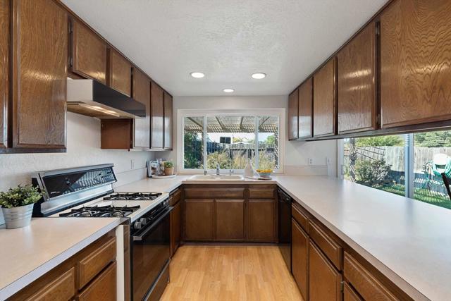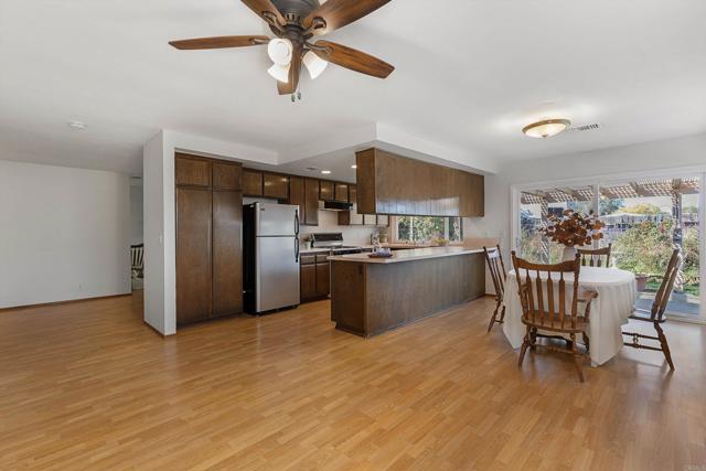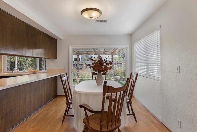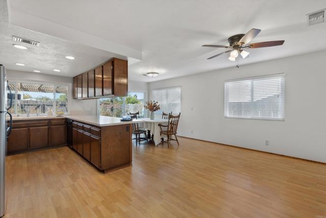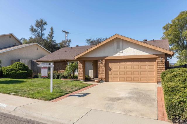 Welcome to this charming single-story home tucked away in the highly sought-after San Marcos Woods neighborhood! Lovingly maintained by its original owner and on the market for the first time, this inviting home offers an open layout with abundant natural light, a cozy brick fireplace, and smooth ceilings for a clean, updated look. The open kitchen connects seamlessly to the family and dining areas, creating a warm, welcoming flow for everyday living and entertaining. Enjoy laminate flooring throughout, dual-pane windows, brand new interior paint throughout, and a large sliding glass door that opens to a private backyard—perfect for relaxing or gardening. The primary suite features a walk-in closet. Additional highlights include a newer water heater (installed 12/2023), attic lighting and walkway access, and indoor laundry hookups in the garage. Located on a quiet street in a lovely, established neighborhood close to shopping, restaurants, and parks—with low HOA!