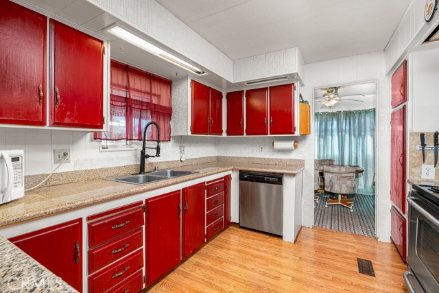 Welcome to this spacious 2-bedroom, 2-bathroom double wide home in the desirable 55+ community of Sierra Dawn Estates. Built in 1970, this well-maintained property features an open floor plan, abundant natural light, and low-maintenance landscaping throughout. Interior highlights include a large living room, formal dining area with built-in China hutch, and a well-appointed kitchen offering garbage disposal, breakfast bar, and pantry. Thoughtful built-in cabinetry throughout the home provides plenty of storage space. The primary suite features ample counter space, a single-sink vanity, and a retro soaking tub. The spacious guest bedroom has direct access to a Jack and Jill bathroom. The indoor laundry room includes washer/dryer hookups and shelving for added convenience. Outside, enjoy a covered patio and carport parking. Located near shopping, dining, and local services, this home offers comfort, convenience, and community living at its best. Sierra Dawn Estates' amenities include 4 clubhouses, 5 pools, Jacuzzi's, Sauna, Exercise Room, Shuffle Board and various other activities...contact management to hear all about it!