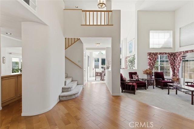 Incredible opportunity to purchase a two-story home in the privately gated community of La Villanueva in West Hills. First time the home is being offered on the market by the original owner. Situated on an interior cul-de-sac street, the location is one of the best in the entire community as it is quiet and doesn’t back to a busy street or a hillside. The front of the home features sprawling front lawn, covered front porch, and paver stone driveway that leads to the attached 2-car garage with direct access and extra storage room. Step inside to find a light and bright floor plan with oversized picture windows throughout. A formal entry foyer features coat closet and soaring two-story ceiling that continues into the spacious formal living room and the separate formal dining room which overlooks the backyard and has direct kitchen access. The large kitchen overlooks the yard and has center island, ample counter and cabinet space, and separate breakfast nook with glass slider that opens to a side patio. The kitchen opens to a separate large family room with two-story ceiling, marble fireplace, and wet bar with serving counter, sink, and built-in storage. The first floor also features a laundry room with built-in cabinetry and a downstairs bedroom/office with access to a full bathroom with walk-in shower also ideal for guest powder bath. Upstairs you will find a sweeping landing with built-in linen cabinetry and three additional bedroom suites, each with their own private bathrooms. The primary suite boasts double door entry, high pitched ceiling, two walk-in closets, and large bathroom with custom vanity, dual sinks, bath tub, separate walk-in shower, built-in linen cabinetry, and toilet room. One of the secondary bedrooms upstairs also features access to a private balcony deck. The tranquil backyard features large patio perfect for outdoor dining, wraparound grass lawn for play, and lush landscaping including a persimmon fruit tree. A neighborhood park is located right outside the gates of the community and Chaminade High School is across the street. The home is also zoned for highly acclaimed public schools including Pomelo Elementary, Hale, and El Camino charter schools. Adjacent to West Hills Hospital, the remodeled Platt shopping Center, dining/shopping at the Westfield Mall & Village, and Warner Center.