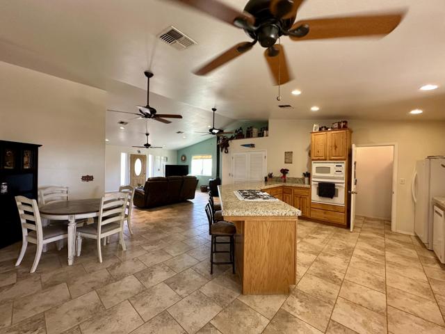 Welcome to river living! This spacious 3 bedroom, 2 bath home offers over 1,800 sq. ft. of comfortable living with an open concept layout perfect for entertaining. The kitchen features beautiful granite counters, plenty of cabinet space, and a large island overlooking the living area. Enjoy tile flooring, neutral tones, and a cozy wood burning stove that adds warmth and charm.Step outside to a generous covered patio and expansive parking area room for over 17 vehicles, boats, or RVs! The temperature controlled garage is ideal for hobbies or storage, and the property includes solar and a tankless water heater for energy efficiency. Also included is a 40x8 Conex perfect for tools, toys or additional storage. Located in a quiet river access community with a low HOA of only $200/year, residents enjoy private boat ramp access to the Colorado River. This home has it all space, comfort, and access to the water!