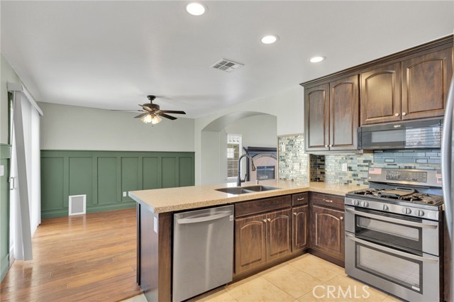 Charming and Upgraded Home with PAID SOLAR and Flexible Floor Plan Welcome to this beautifully maintained 3–4 bedroom home offering a perfect blend of comfort, character, and modern upgrades. Step inside to find real wood flooring in the living room, entry, and kitchen, complemented by a mix of carpet, tile, and laminate throughout the rest of the home. The spacious living room features a decorative gas or wood-burning fireplace, custom built-ins, and plenty of natural light. The upgraded kitchen boasts granite countertops, a stylish glass tile backsplash, stainless steel appliances, and a breakfast bar that seats three—ideal for casual dining. Elegant wainscoting adds charm to the kitchen, while the included refrigerator makes this space move-in ready. The home offers a dedicated laundry room with extra storage, plus a versatile bonus room that can serve as a gym, office, or fourth bedroom, complete with access to both the garage and front porch. The washer and dryer are also included. Enjoy peace of mind with thoughtful upgrades such as newer window coverings (installed in 2023), reflective window tinting, a Ring doorbell, and a Moen smart water monitoring and leak protection system. Bathroom one features an upgraded tiled shower and tile flooring. Step outside to your backyard retreat featuring low-maintenance artificial grass, a covered patio, and a cozy fire pit, everything is dry scaped!!—perfect for entertaining or relaxing outdoors. The home also includes 15 paid solar panels (installed in 2023, Enphase system) for energy efficiency and long-term savings. This home truly has it all—style, practicality, and sustainability—ready for its next owner to move right in and enjoy.