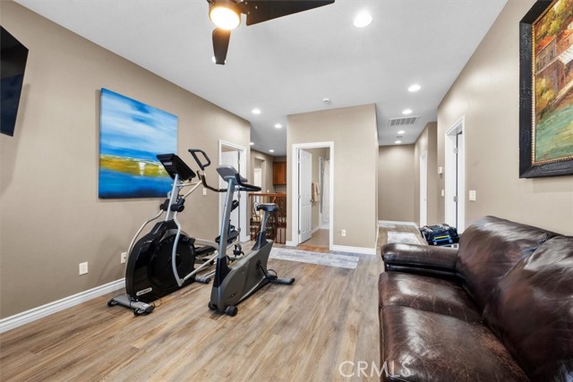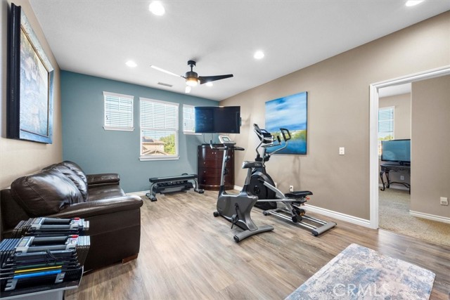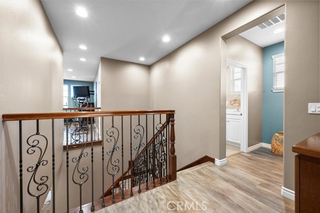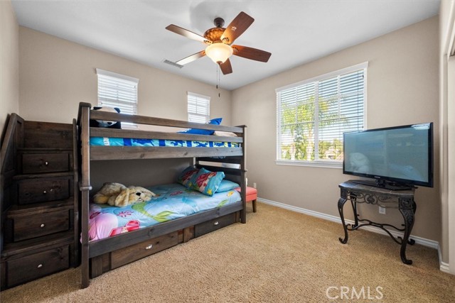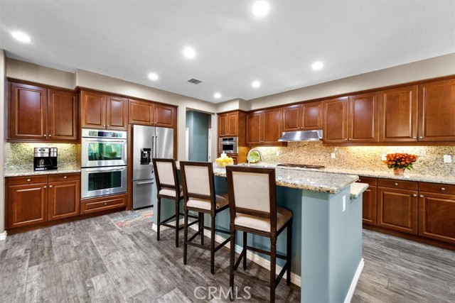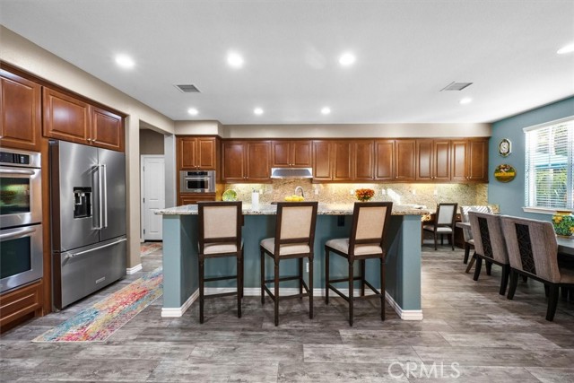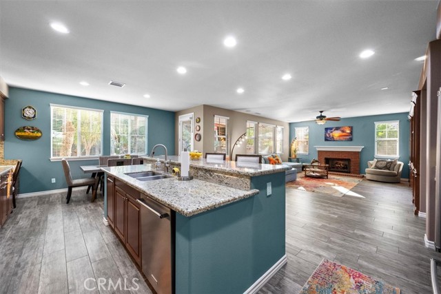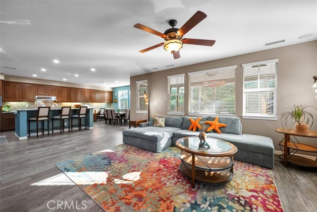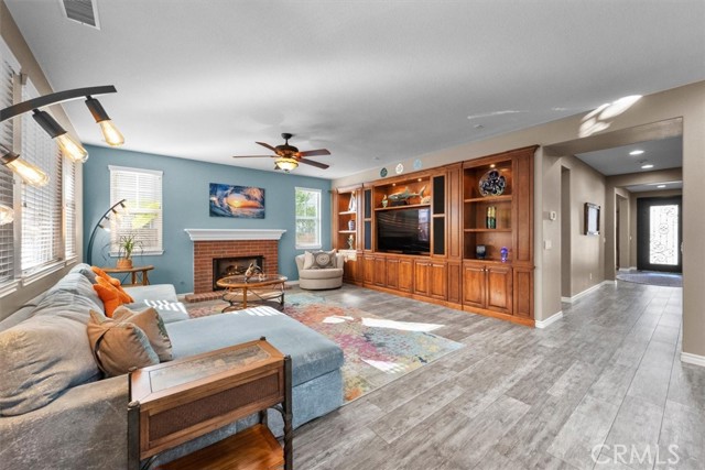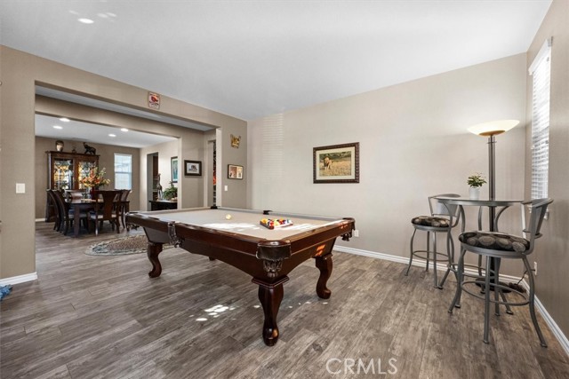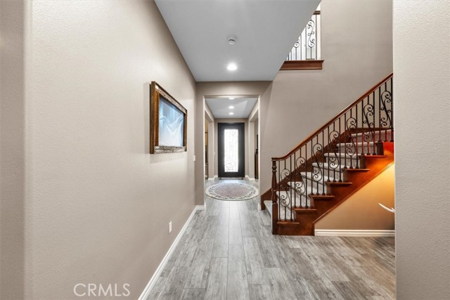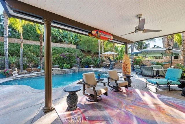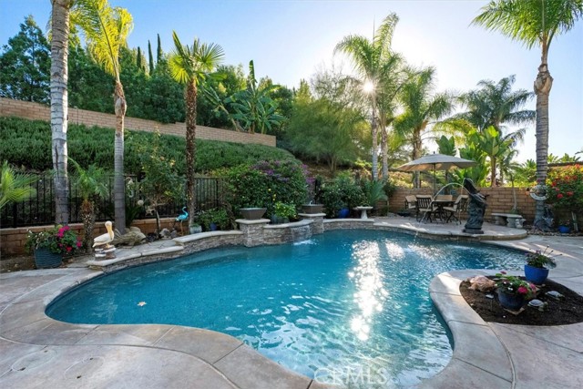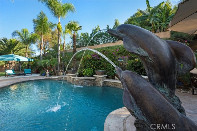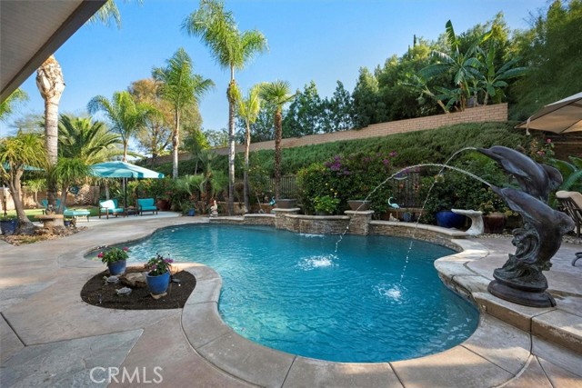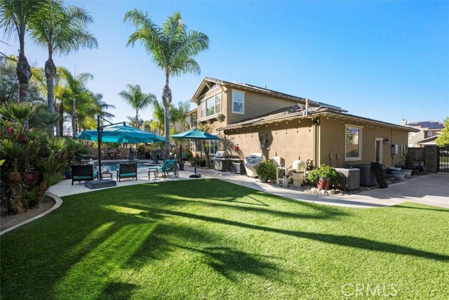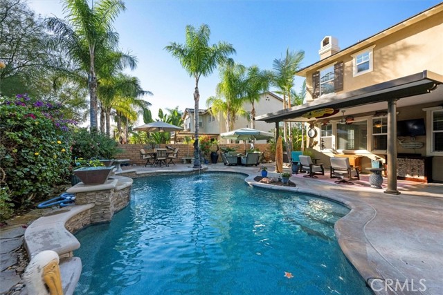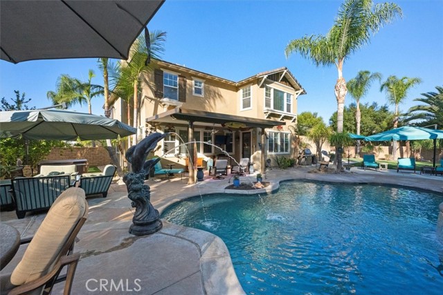 Discover the art of California living at 12693 Sierra Creek Dr, where resort-style comfort meets entertainer sophistication. This Modern Craftsman masterpiece, built by Standard Pacific Homes, offers 5 bedrooms, 4 baths, and 3,737 square feet of thoughtfully designed living space on a generous 15,246 square foot lot in the sought-after Sierra Heights community. Step through the grand entry into light-filled spaces with soaring ceilings, an elegant wrought-iron staircase, and a gourmet kitchen featuring granite countertops, rich wood cabinetry, stainless steel appliances, and a center island that opens to the spacious family room. Designed for effortless entertaining, this home includes a dedicated pool-table game room, inviting dining and living areas, and direct access to a private backyard oasis that feels like a true resort. Enjoy the sparkling pool with a dolphin-inspired waterfall, an above-ground spa, mini turf putting and golf area, RV parking, and lush landscaping adorned with mature lime and lemon trees—perfect for relaxing summer evenings and memorable gatherings. The main-level bedroom with full bath offers convenience for guests or multi-generational living. Upstairs, a versatile loft provides the ideal space for a media area, home office, or playroom. The primary suite serves as a luxurious retreat with two walk-in closets, a spa-inspired bath with soaking tub, dual vanities, and a serene ambiance ideal for unwinding. Additional highlights include energy-efficient solar, a 4-car tandem garage, and access to a private neighborhood park—all within close proximity to top-rated schools, shopping, and local amenities. Experience the perfect balance of luxury, leisure, and lifestyle — welcome home to Sierra Heights!