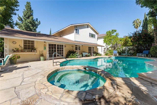 Welcome to 10800 Bismarck Avenue, a beautiful 4-bedroom, two-story pool home ideally situated on a desirable corner lot in the heart of Porter Ranch. This inviting residence offers comfort, convenience, and modern updates throughout. The spacious living room features a cozy fireplace, built-in book shelves, plantation shutters and abundant natural light, creating a warm and welcoming atmosphere. The updated eat-in kitchen includes stylish finishes, plenty of cabinet space, and a sliding door that opens directly to the backyard and sparkling pool—perfect for entertaining or relaxing outdoors. A separate den provides added flexibility as a home office, playroom, or media space. The primary suite is conveniently located on the first floor and offers privacy and ease of access, while the secondary bedrooms upstairs provide plenty of space for family or guests. Recent upgrades include a newer roof, new A/C system, and tankless water heater. The home also features leased solar for energy efficiency and a two-car garage for added convenience. Located within the highly rated Beckford Elementary, Nobel Charter Middle School, and Granada Hills Charter High School boundaries, this property also enjoys close proximity to premier dining, shopping, and entertainment at The Vineyards at Porter Ranch. A wonderful opportunity to enjoy the best of Porter Ranch living—comfort, convenience, and community—all in one beautiful home.