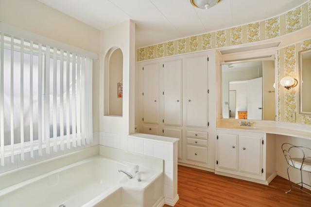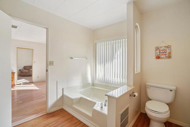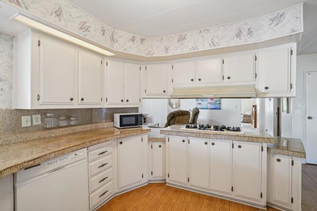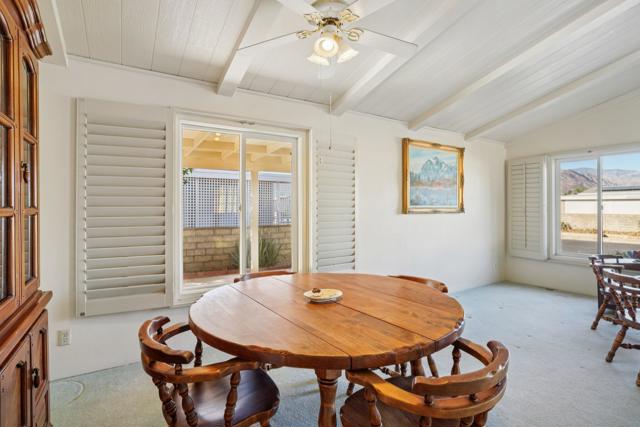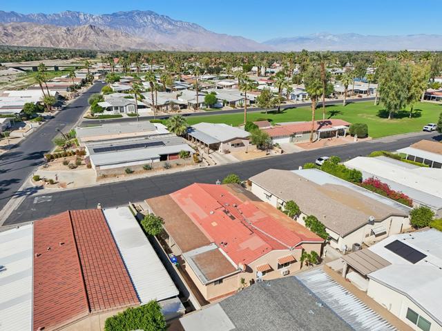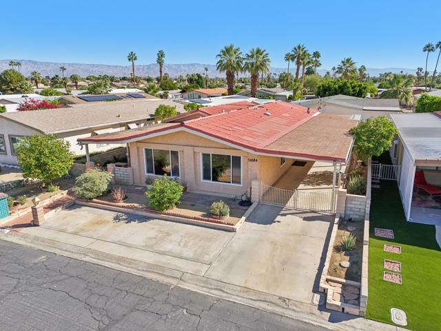 Welcome to your lovely Portola Country Club where you own the land! This charming residence sits on a permanent foundation (433 approved), making financing easy and worry-free. Step inside this wonderful home featuring 2 bedrooms plus a bonus room/office and 2 baths, 1734 sqft home. this spacious home is filled with natural light streaming through newer windows. The kitchen offers granite tile countertops and ample storage, while the inviting living room showcases large picture windows framing scenic views. The primary suite includes a generous walk-in closet and a roman tub with separate shower for added comfort. Step outside to a quaint covered patio, perfect for relaxing or entertaining. Making this home truly one of a kind. The storage shed provides space for tools, gardening essentials and all of your holiday decorations. As part of a vibrant 55+ community, residents enjoy low HOA fees ($440) and an abundance of amenities: unlimited golf for two, complimentary cable and internet, free trash collection, three pools and spas, a clubhouse, tennis and pickleball courts, bocce ball, fitness center, and cafe. Experience the best of desert living and remember, you own the land!