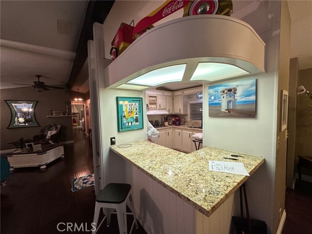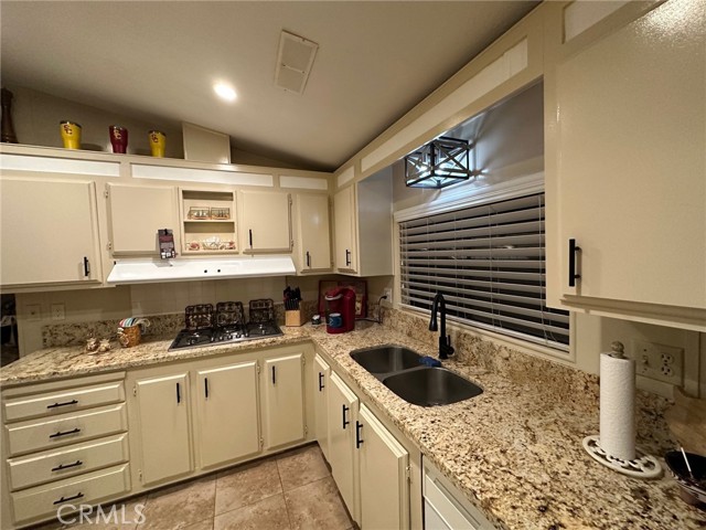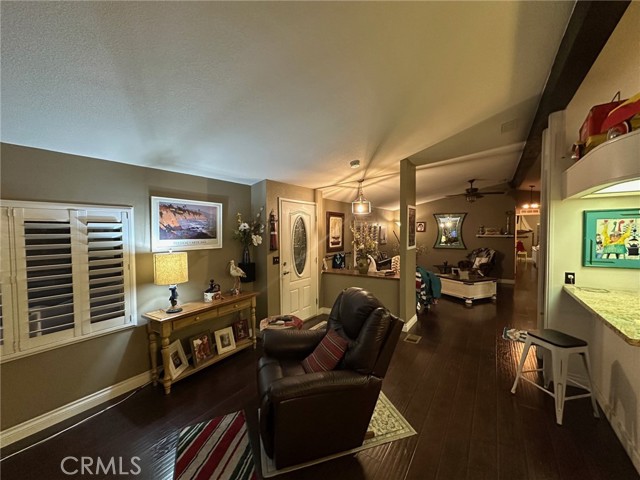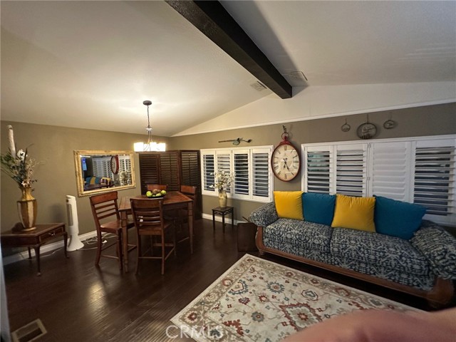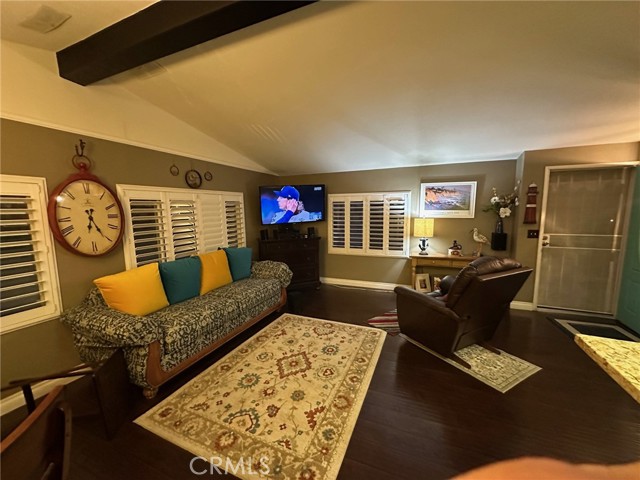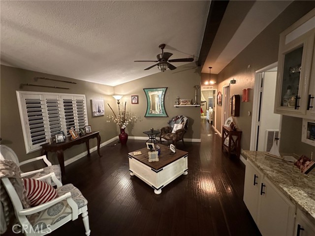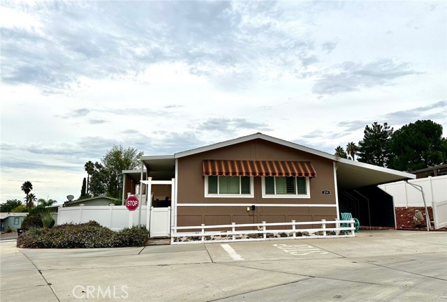 This Home shouts Pride of Ownership!!! Upgrades Galore! Nestled on a Corner Lot with Large back Yard with Vinyl Fencing. The homes Outside was Paineted a year ago. Many upgrades to the outside include. Front and back porches upgraded, Home has been Leveled and Earthquake Braced. Custom Window Shades to keep home cooler in Summer. The Walkways are Granite. The Parking Area was widened to park two small cars side by side. Also Motion Dectection Lighting. The Outside Lanscaping is Desert Theme low maitenance. The inside of the Home is Like a Model. Freshly Painted with Upgrdes Galore. Front Custom Door with Glass. You will first notice the Tall Vaulted Ceilings and The Custom Laminte Wood Flooring with Mouldings throughout. The Kitchen has been remodeeld with Granite Counters, New Sink and plumbing and recessed Lighting. The home has Dual Pane Windows Throughout with Custom Chutters. Both Baths have also been Remodeled. Master bath has new Glass shower with tlled walls and Floor. So much to share. This home is a MUST SEE! All this in the most sought after Park in the IE ammenities galore. Like Living in a Resort. 3 Pools, 1 Tennis court and 2 Pickleball Courts, Spa and Workout Room, PicNic Area, and Dog Park. etc etc