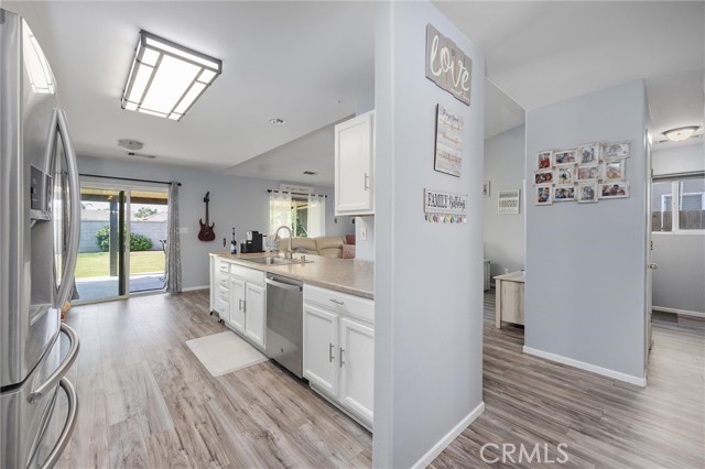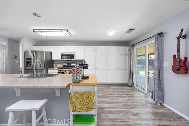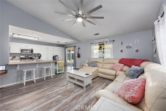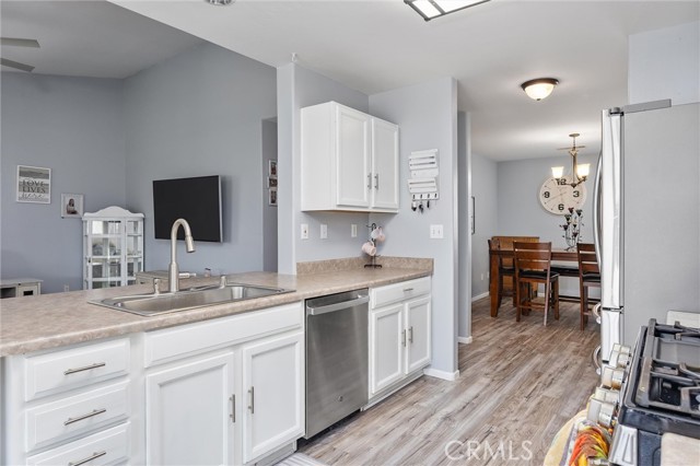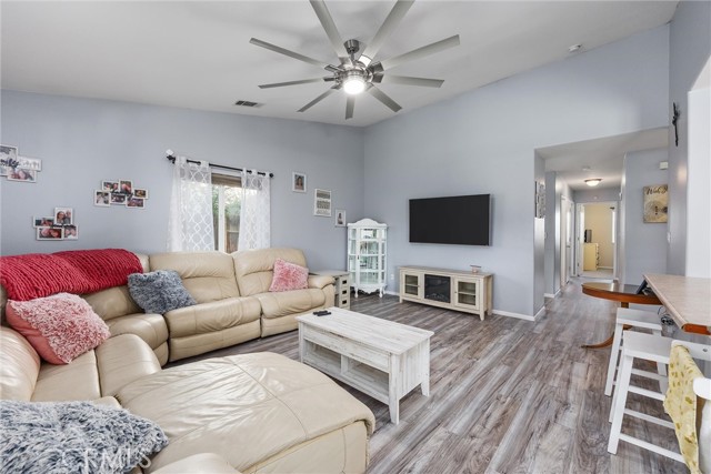Discover this highly desirable NW split-wing home offering 4B/2B and 1,843 sqft. of thoughtfully designed living space. Step inside to durable wood-look flooring and a bright, open kitchen featuring crisp white cabinetry, abundant storage, and appliances less than 2 years old. The formal dining room flows seamlessly into the kitchen, creating the ideal setup for entertaining family and friends. A dedicated storage area helps keep your home organized, enhancing functionality. The backyard is built for relaxation and gatherings, boasting a spacious covered patio with recessed lighting and ceiling fans, plus a spa that stays with the property. Located near both elementary and high schools, this home blends comfort and convenience.