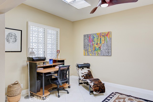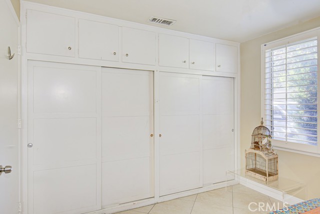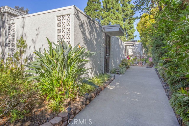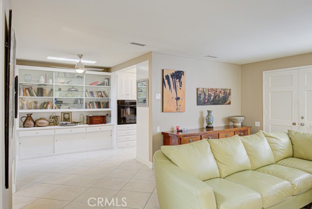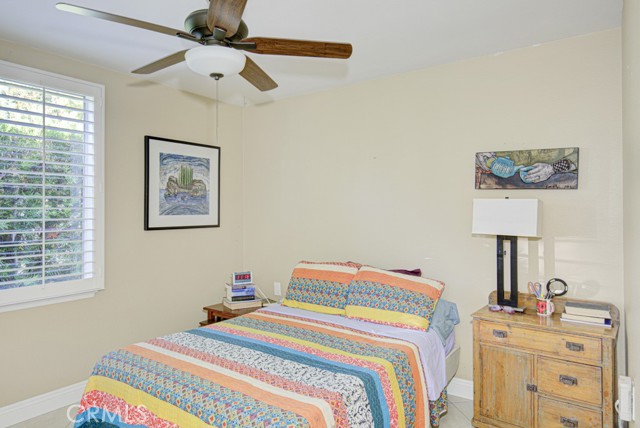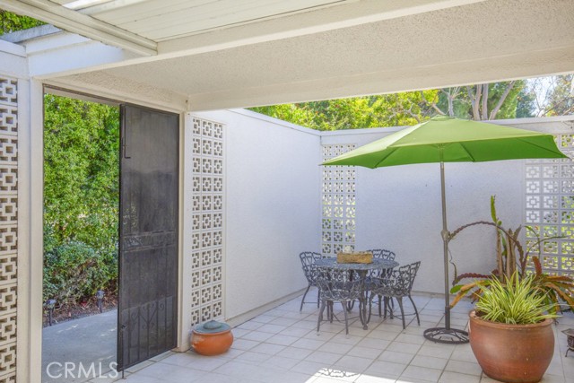 Serene Single-Story Cottage in Award-Winning Laguna Woods Village Orange County’s premier 55+ community known for its resort-style amenities and vibrant lifestyle. This single-story cottage offers comfort, privacy, and effortless living — with no stairs to enter the home. A lushly landscaped walkway leads you to a double wrought-iron gated patio, creating a peaceful buffer from the nearby street. Step through double entry doors into a home filled with light, calm, and style. Inside, you’ll find a spacious living room with smooth ceilings, large ceramic tile floors, and walls perfect for showcasing your art. The enclosed atrium, with its skylights and large window, expands the living space and floods the room with natural light — ideal for use as a den, TV room, or dining area. The dining room's built-in cabinetry and bookshelves offer added storage and display, a skylight, and a ceiling fan for year-round comfort. The kitchen shines with freshly painted white cabinets, slab granite countertops, and a glass tile backsplash. The oven, cooktop, dishwasher, refrigerator, and exhaust fan — are maintained by the HOA. The kitchen overlooks the spacious covered front patio, perfect for morning coffee or afternoon relaxation. A hallway from the living area leads to two generous bedrooms and a Jack-and-Jill bathroom connected by an easy step-in shower. Both bedrooms feature ceiling fans, smooth ceilings, plantation shutters, and floor-to-ceiling storage with cabinets above the closets. Step outside again to enjoy your private front patio, partially covered for shade and partially open to let in California sunshine. A large outdoor storage cabinet provides room for gardening tools or seasonal decor. With its thoughtful updates, peaceful ambiance, and location in one of the most desirable senior communities in Southern California, this cottage offers the perfect blend of comfort, convenience, and charm. Lush greenery and thoughtful upgrades make this home move-in ready and truly special. Ownership affords you the use of all the amenities that make Laguna Woods Village one of the most sought-after senior communities. Enjoy 5 swimming pools, 7 clubhouses, 3 gyms, craft studios, 2 gorgeous golf courses (27 hole & 9-hole par 3), over 250 social clubs, performing arts theater, tennis courts, equestrian trails, stable, fare free bus service, golf cart paths, manned security gates, lawn bowling, bocce ball, pickle ball & much more.