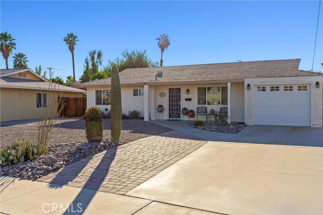 Discover the perfect blend of comfort and sophistication in this beautifully appointed 2-bedroom, 2-bathroom home offering 1,064 square feet of thoughtfully designed living space. Nestled in the desirable Palm Desert Country Club community, this residence provides an exceptional desert lifestyle with incredible amenities and remarkably low HOA dues of just $33 per month. Step inside to find elegant plantation shutters adorning every window, providing both style and climate control while filtering the warm California sun. The kitchen showcases stunning granite countertops that combine durability with timeless appeal, perfect for both everyday living and entertaining guests. The flexible floor plan includes a versatile bonus room, ideal for a home office or creative studio – easily adaptable to suit your lifestyle needs. Both bathrooms are well-appointed, and the two bedrooms offer comfortable retreats with ample space. The private backyard features a covered patio that's perfect for entertaining guests or simply relaxing while enjoying the beautiful desert weather year-round. Living in Palm Desert Country Club means enjoying an 18-hole championship par 72 golf course with scenic tree-lined fairways and breathtaking mountain views, all winding through the community. Residents have access to the welcoming clubhouse featuring the Palm Desert Country Club Bar & Grill, where you can savor delicious pub-style cuisine and beverages while enjoying live music on Friday evenings. The well-maintained course and friendly atmosphere make this community a golfer's paradise while maintaining an exceptional value with those incredibly affordable monthly dues. Perfectly positioned near the valley's premier attractions, you're just minutes from the state-of-the-art Acrisure Arena for world-class concerts and sporting events, the renowned Indian Wells Tennis Gardens home to the BNP Paribas Open, and the Cal State University Palm Desert campus. Conveniently located near shopping, dining, and top-rated schools, this home offers excellent potential for first time home buyers, investors, full-time residents, or as a seasonal desert getaway. This home offers an incredible opportunity to embrace the coveted desert lifestyle in a prime location with unbeatable value. Don't miss your chance to make this Palm Desert gem your own!