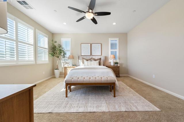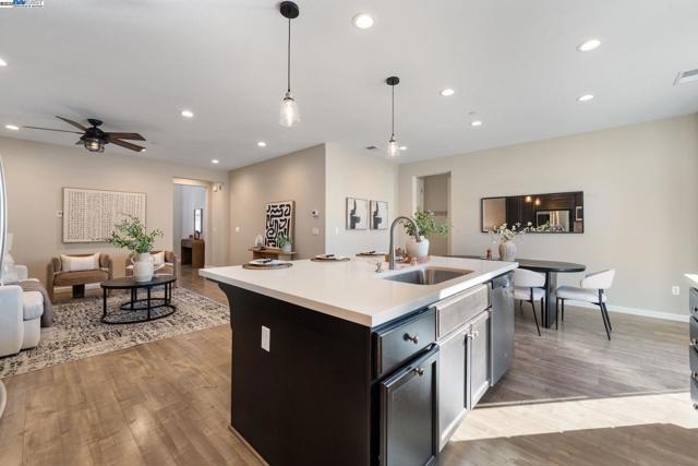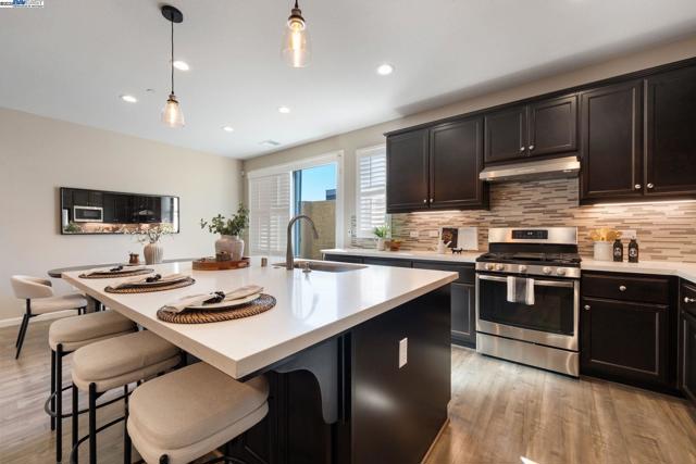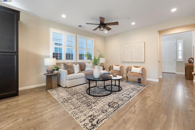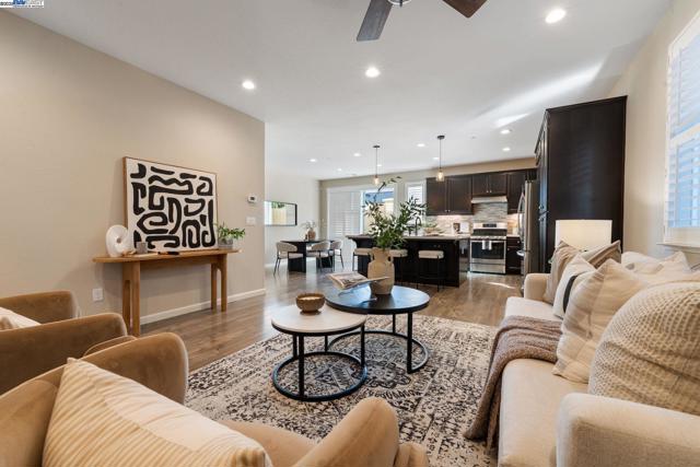 Welcome to Rovello Loop! This beautifully maintained East-facing 3 bedroom, 3 full bath, 2,087 sq ft home offers a highly desirable and flexible floor plan, including a downstairs bedroom and full bath. Ideal for guests, in-laws, or office use. The bright open-concept main level features a spacious great room, dining area, and a chef’s kitchen with a large island, stainless steel appliances, and generous cabinetry. Upstairs, you'll find a convenient laundry room, well-sized secondary bedroom, and a loft that can be converted into a 4th bedroom. The private primary suite includes a walk-in closet and spa-inspired bathroom with dual vanities. Enjoy outdoor living in the low-maintenance backyard, great for BBQs and California evenings. Situated in a highly desirable Livermore location walking distance to Altamont Beer Works, popular wineries, and moments from charming downtown. Excellent commuter access to 580/84 and close to the Lawrence Livermore Lab. Wine-country living with modern comfort and convenience. Don’t miss this fantastic opportunity!