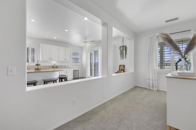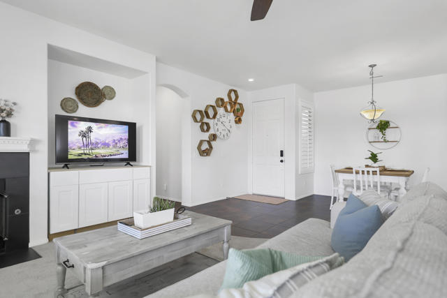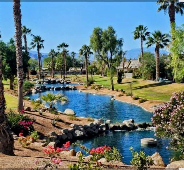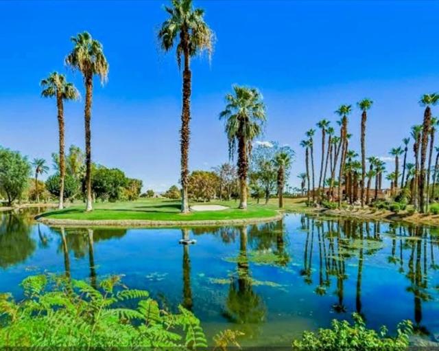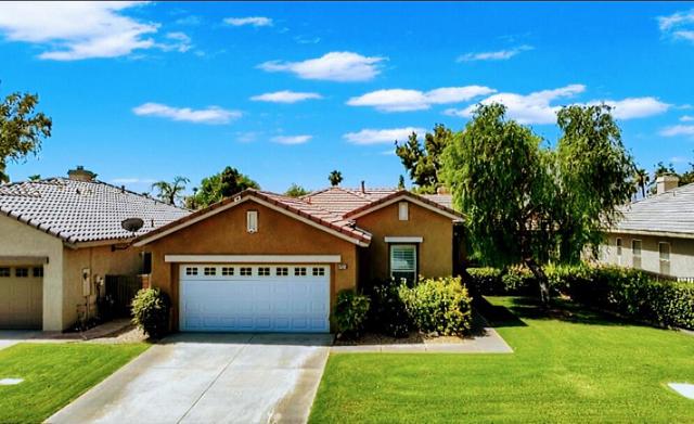 Whether you're looking for a full-time residence or an investment, this desert resort home offers excellent vacation rental income potential. Located on the golf course in the desirable gated community of Indian Palms, this 2002-built home features an open floor plan with gorgeous views. The private master retreat includes backyard access, walk-in closet, dual vanity, soaking tub, and separate shower. Enjoy indoor-outdoor living with a new lawn & covered patio w/ gated golf course access--perfect for relaxing, entertaining, or taking in scenic golf course and Palm Springs Mountain Range views. Inside, tasteful finishes, plantation shutters, and a cozy gas fireplace create a bright and welcoming vibe. Ideally located across from the Coachella and Stagecoach Festival Grounds and Empire Polo Club. Indian Palms Country Club & Resort offers pools, dining, tennis, pickleball, bocce ball, fitness center, and more. This home not only provides comfort and style, but also offers vacation rental income potential.'