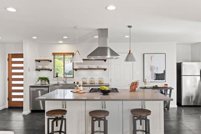 Beautifully remodeled home on a large lot offering room to expand. The open floor plan is flooded with natural light through dual-pane windows and doors, highlighting gleaming hardwood floors & stylish finishes. The chefs kitchen features a spacious breakfast island and stainless steel appliances perfect for everyday living and entertaining. The living and dining areas flow seamlessly to a raised outdoor deck ideal for al fresco dining or evening gatherings. Three comfortable bedrooms and a tastefully updated bathroom provide cozy living spaces, while the bonus enclosed sunroom (not included in square footage) offers a flexible area for work, play, or relaxation. Outside, enjoy a private enclosed backyard, an inviting retreat with plenty of space to garden, entertain, or simply unwind. The oversized two-car garage includes epoxy flooring and abundant storage. Additional upgrades include LED recessed lighting and custom window treatments throughout, a newer roof, copper plumbing, newer electrical panel, leased solar panels, whole-house water softener (owned), new hot water heater and refreshed landscaping with automatic sprinklers. Located near top-rated schools, parks, & shopping with easy freeway access, this home delivers both convenience and lifestyle in one perfect package.