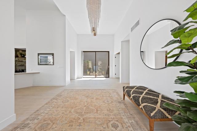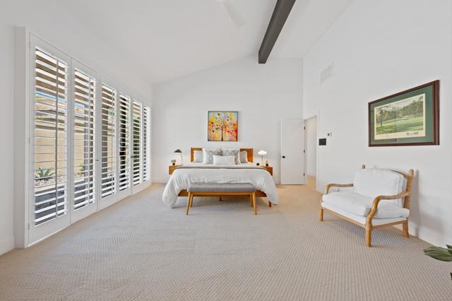 Welcome to this beautifully upgraded Legends 40 model home, perfectly located on the 3rd hole of the iconic PGA West Stadium Course. Offering panoramic golf course and mountain views, this 3,031 sq. ft. residence is the ultimate in desert resort living.Step inside to a light-filled, expansive floor plan featuring 3 spacious ensuite bedrooms and 3.5 baths. Recently refreshed with all new tile and carpet flooring, fresh interior paint, and modern painted MDF baseboards and door trim, the home exudes contemporary elegance throughout.Entertain effortlessly in the grand living room with a sunken wet bar and breathtaking views, or cook like a pro in the chef's kitchen with granite countertops and premium stainless steel appliances. All-new LED can lighting throughout highlights the sophisticated finishes, while shutters in the primary suite and guest bedroom add a layer of privacy and charm.Additional upgrades include a newer AC unit, new mini-split A/C in the main garage, epoxy garage flooring, newer designer furnishings, and a Silver EZ-GO electric golf cart. Step outside to enjoy your private patio with new outdoor furniture and a brand-new Traeger ''Flatrock'' BBQ--perfect for sunset gatherings.This home also features high-end custom electric blinds in living room, sitting area, and dining room. Lastly, there are Eufy security cameras for added peace of mind. Offered fully furnished per inventory.
