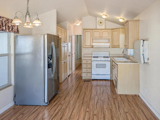 Delightful and well maintained 2-bedroom, 2-bathroom 2006 Laurel crest Park Model ~670 sq. ft. Great features in this bright and cheery home include washer/dryer, new hardwood flooring throughout, new refrigerator, new fireplace in the functional California room with vertical dual opening double pane windows for efficiency, the additional bathroom is new and complete with nice touches. Outside enjoy 2 covered and private decks perfect for entertaining, or having a barbeque, with sweeping views of the local desert hills and mountains, sports courts and driving range. Centrally located in the park you will enjoy the many amenities such as mineral hot spring pool and spas, state of the art fitness center, 9-hole golf course, 8-pickleball courts, tennis courts, laundry facilities, library, and fun organized community events. Come, make this your new home or getaway destination and enjoy this amazing place nestled in the desert at the premiere 55+ Caliente Springs Resort. Lot is not owned; space rent is $707. Easy lender financing (OAC).