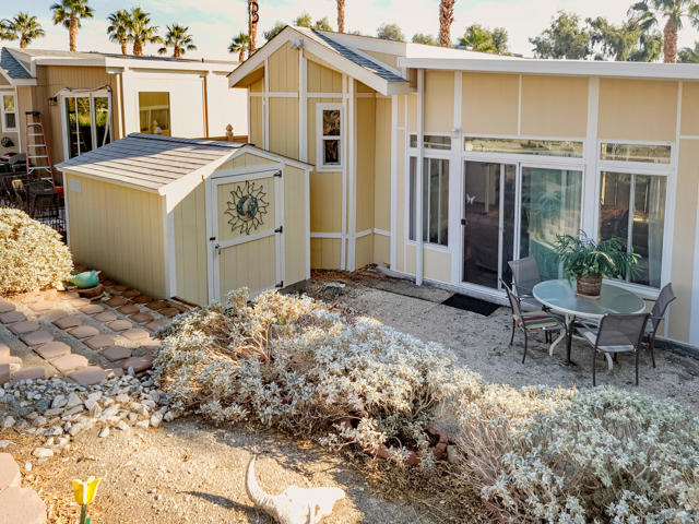 Incredible views of Mt. San Jacinto from the front of this gem. Step into this well-appointed ~780 sq. ft. sought after 2010 Cavco Park Model featuring 1 bedroom, 1 bath, 2-way opening windows, and volume ceilings. Step out back is the private, lush desert and hills for an enchanting sunset with a backdrop of immense scenery. A shed is included for extra storage. Located in the premiere 55+ Caliente Springs Resort which offers amenities that include mineral hot spring pool and spas, state of the art fitness center, 9-hole golf course, 8-pickleball courts, tennis courts, chapel services, laundry facilities, library, and fun organized community events. Come make this your new home or getaway place and meet new friends while enjoying this amazing community. Lot is not owned; space rent is $772. Easy lender financing (OAC)