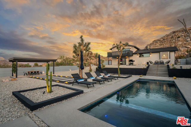 Proven high-grossing short-term rental performing at $200K annually with consistent occupancy and 5-star guest reviews. The Majestic Luxury Escape is a fully remodeled, turnkey 5-bedroom, 3-bath modern retreat that comfortably sleeps 12 guests and comes fully furnished and rental-ready.Spanning 2,458 sq. ft. on a 21,000 sq. ft. lot, this designer home features a resort-style backyard with pool and jacuzzi, open-concept living and dining spaces, and a game room with pool table. The chef's kitchen includes a large island, premium appliances, and abundant counter space is ideal for hosting large groups.Each bedroom is equipped with brand-new memory foam mattresses, and the layout includes multiple queen suites plus a primary with ensuite bath. Additional highlights include an electric fireplace, smart TVs, and outdoor entertaining zones surrounded by desert landscaping.Located minutes from downtown Joshua Tree, this property delivers both lifestyle and ROIideal for investors seeking a stabilized, high-performing STR asset or a personal-use vacation home with immediate income potential.Turnkey, furnished, and already generating revenue.Contact listing agent for full financials and Airbnb performance report.