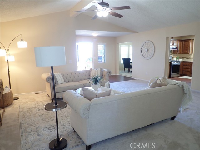 This Beautiful home is located in the gated Senior Community of Sun Meadows. Its large footprint boasts over 1500 sq ft of living space with a fully covered patio and attached 2 car garage. Enter this well maintained home into the large open living space with vaulted ceilings. As you enter, to the left is a formal dining room area with a doorway leading into the large open kitchen with upgraded appliances and counter tops. Venture down the hallway which leads to indoor laundry room, 2nd bathroom and 2nd bedroom. On the opposite side of the home is a large spacious primary bedroom with walk in closet and attached main bathroom with separate shower and large soaking tub. This home has brand new carpet, newer paint, newer A/C unit and Water Heater. Must See home!!