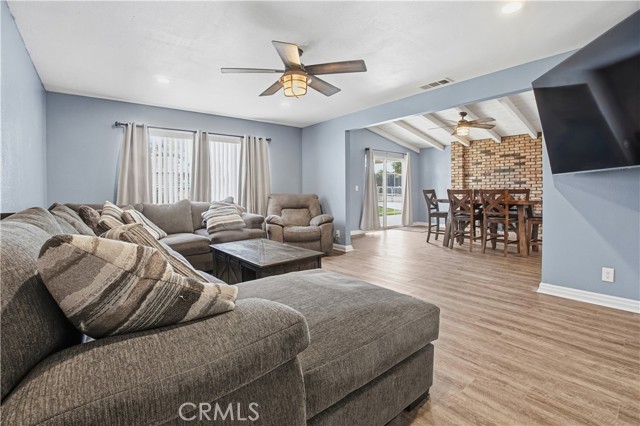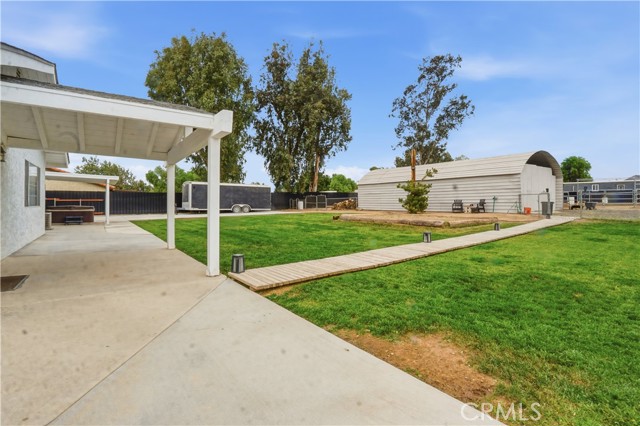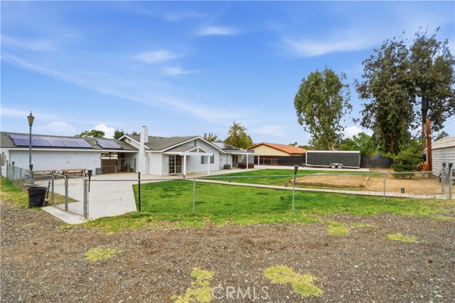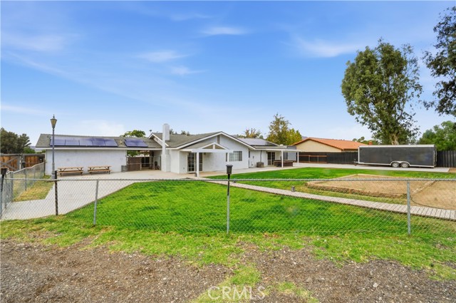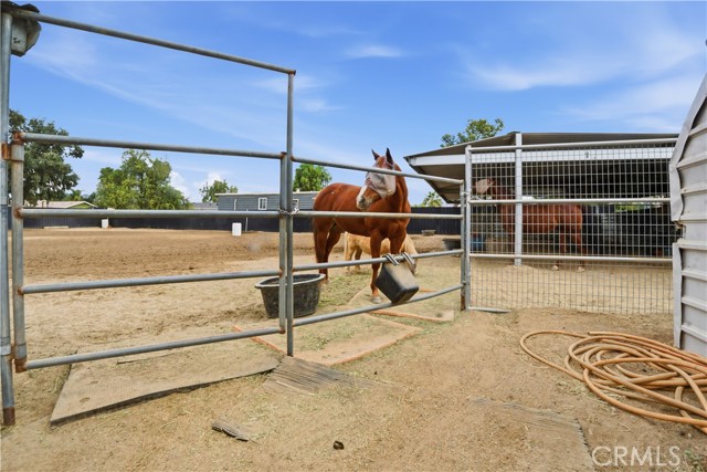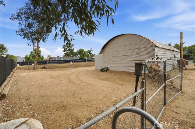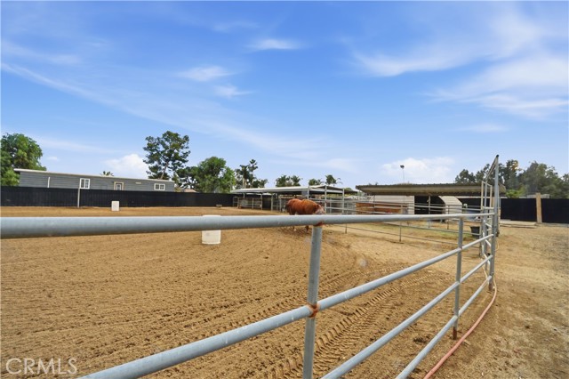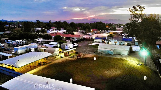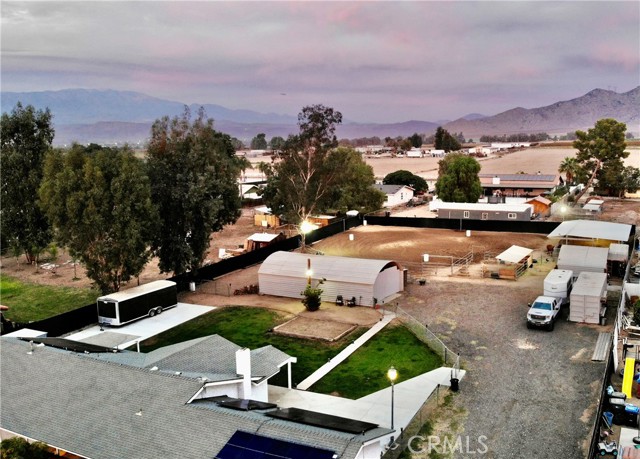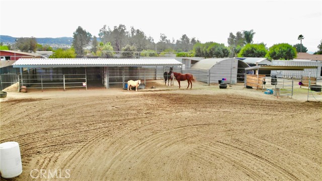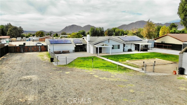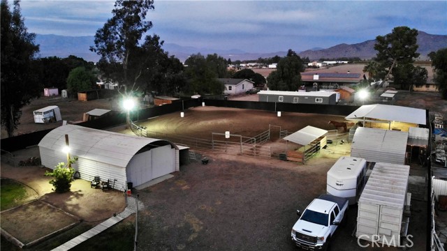 Turnkey Horse Property in Nuevo –Made for Horse Lovers and Outdoor Enthusiasts.The perfect blend of country charm and modern comfort in this beautifully maintained single-story ranch home. 4 bedrooms, 2 bathrooms, 1,820 sq. ft., move-in ready for you and your horses.Enjoy peaceful mornings or golden sunsets on your front porch. A perfect spot to take in the quiet country views and the beauty of your surroundings. Floorplan featurs a cozy brick fireplace open to the living and family rooms. The updated galley kitchen showcases granite countertops, white cabinetry, and stainless-steel appliances. The hall bathroom, tastefully remodeled with a custom vanity, tile finishes, a large soaking tub. The primary suite includes dual sinks, a spacious walk-in closet, and a sliding door leading to the backyard retreat.Situated on nearly an acre of all-flat, usable land (42,253 sq. ft.),Fully fenced with corrugated steel for privacy, dual gates (14 & 16 ft) on both sides of the property,the main gate having heavy duty lift master automatic openers. Open gate with a click of a button!Designed with equestrian living in mind, two RV hookups both with 30-amp outlets, a dump station! Ample space for horse trailers, RVs, all your toys on the 120’+ concrete slab.Metal building, covered RV parking and space for storage w/ attached enclosed lean-to for tractor parking, hay barn and additional 26’ shipping container converted to a tack room/storage shed. All this and a Castle for your chickens! Complete with automatic fans and lights.Concrete wash rack with cross ties, the main attraction an approx 100’ x 120' riding arena with lighting, a sprinkler system, dirt/sand mix for great footing. A 48’x24’ cover partial walled stable that has room for up to 4 covered 12x24’ stalls, 2 fans and lights on timers and water at each stall and an additional 24x24 outside stall with cover. Ride out straight from your property,for tons of trails! Within 10 minutes to 1 hour from to horse arenas and trails!! Upgraded main electrical panel,attic Fan, whole property carbon water filtration system for home and livestock, 31 Panel solar system. Say Goodbye to your electric bill! A relaxing backyard with a large grass area, garden space, patio cover, and jacuzzi. Walking distance to schools, surrounded by an equestrian community, offers the ideal setting for raising horses, animals, and family alike.Come see why this exceptional ranch will make both you and your horses feel right at home.
