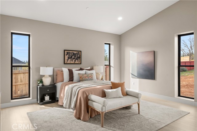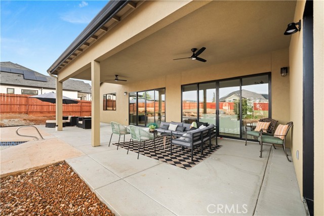 - Forever Home. Built with Intention. Designed for Life. - Designed as a true forever home, this 3,358 square foot custom residence combines structural integrity, energy efficiency, and refined comfort in one thoughtfully executed design. Constructed with Insulated Concrete Form (ICF) technology, the exterior walls consist of 6-inch steel-reinforced concrete flanked by over 5 inches of continuous insulation, delivering exceptional durability, fire resistance, and thermal performance. This PG&E Zero Net Energy qualified home is powered by owned solar, contributing to reduced utility costs. Insurance options available through Farmers Insurance reflect the strength of this construction method. Located in lower East Paradise, this 4-bedroom, 3-bath layout blends resilience with modern design. High ceilings, exposed wood beam accents, and black dual-pane Milgard windows bring natural light throughout. The great room is anchored by a fireplace and opens seamlessly to outdoor living through expansive sliding glass doors. The kitchen is designed for everyday function and entertaining, featuring shaker cabinetry with pull-out drawers, quartz countertops with full-height backsplash, induction range with convection oven, vent hood, walk-in pantry, and an oversized island with prep sink. Bamboo hardwood flooring runs throughout the main living areas and bedrooms, each bedroom thoughtfully appointed with its own ceiling fan. The primary suite includes vaulted ceilings, fireplace, patio access, a spacious walk-in closet, and a spa-inspired bath with dual vanities, soaking tub, and oversized tiled shower with bench and niche storage. Two additional bedrooms share a Jack and Jill bath with private vanities. A flexible fourth bedroom functions as an office, guest room, or playroom. The third full bath provides convenient backyard access. Outdoor living is elevated by a 475 square foot California Room with dual ceiling fans, overlooking a newly resurfaced pool with brand new pool equipment and fresh landscaping. The home features a dual-zoned HVAC system with two independent mechanical units and fully ducted distribution for balanced, whole-home climate control. Additional features include an indoor laundry and mud room, new septic system, RV parking with 50-amp hookup, pre-wiring for electric vehicle charging, and enduring materials throughout. Built by local craftsmen to a high standard, this home represents intentional design, lasting comfort, and long-term value.