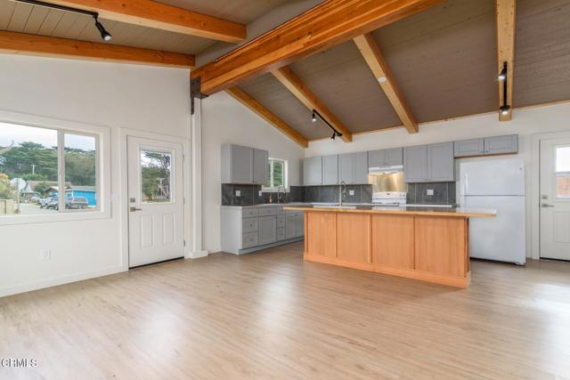 Downtown Point Arena is calling you to this adorable 2 bed 2 bath home which was thoughtfully remodeled in 2024 with custom cabinets, granite countertops, a maple butcherblock island and vaulted ceilings in the kitchen/living area with a stovetop oven and refrigerator included. The interior is essentially new, boasting luxury vinyl flooring throughout, energy efficient electric wall heaters in each room, shower over tub in 1 bath, and granite tile shower in the other. There is an interior sprinkler fire suppression system and the exterior features stucco siding and a new roof. A fenced patio area in the back provides outdoor privacy, with a large partially fenced level lot and off-street parking. The former site of Synergy Yoga provides good vibes for walkable living downtown, across from the Elementary School. Point Arena is home to the Arena Theater, which hosts both movies and music, the Pier where crab boats are going out right now, and a myriad of festivals occur. B Bryan Preserve for African Hoofstock is just up the street, and there are wonderful restaurants in the area. Don't miss this rare opportunity to purchase an affordable home in town!