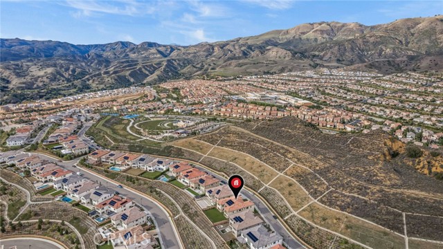 Perched in the highly desirable guard-gated community of Westcliffe at Porter Ranch, this elegant residence captures the perfect balance of modern luxury and timeless design. Enjoy sweeping mountain and city lights views that create a breathtaking backdrop from multiple rooms throughout the home. The grand dual staircase in the foyer sets an impressive tone, while soaring ceilings and expansive windows fill the interiors with natural light. Open-concept living and dining areas flow seamlessly into the gourmet kitchen, featuring premium stainless-steel appliances, a large center island, and a walk-in pantry—ideal for both everyday living and entertaining. Upstairs, the primary suite is a serene retreat offering stunning panoramic vistas, a spa-inspired bathroom with soaking tub and separate shower, and an oversized walk-in closet. Each secondary bedroom includes its own en-suite bath, providing comfort and privacy for family and guests alike. A versatile loft and multiple gathering areas offer flexibility for work, play, or relaxation. Step outside to enjoy peaceful evenings surrounded by city lights and mountain silhouettes—a perfect setting to unwind and take in the beauty of Porter Ranch living.