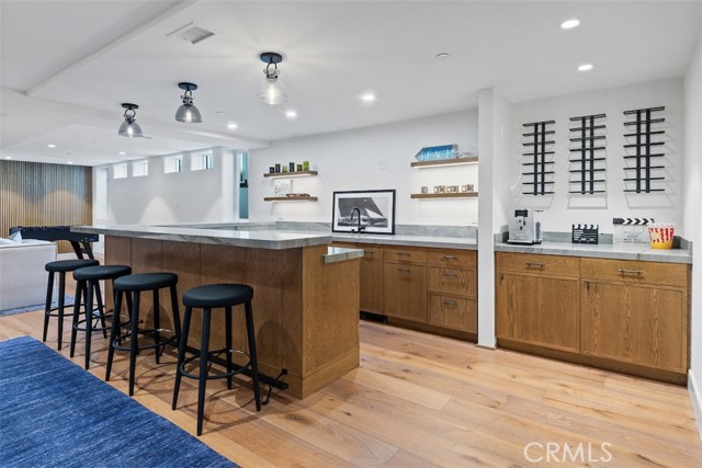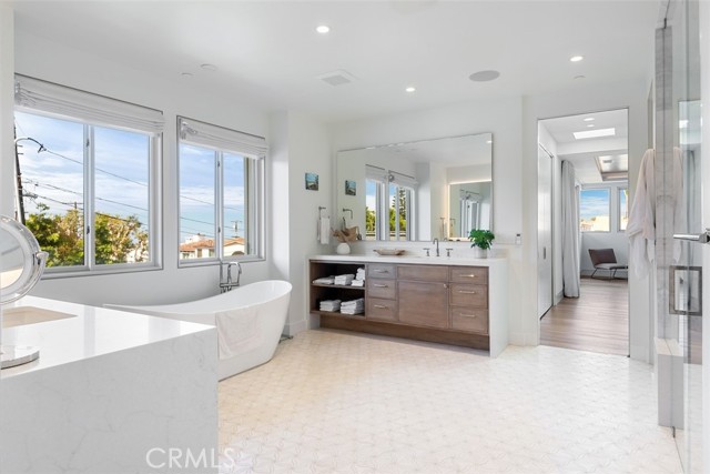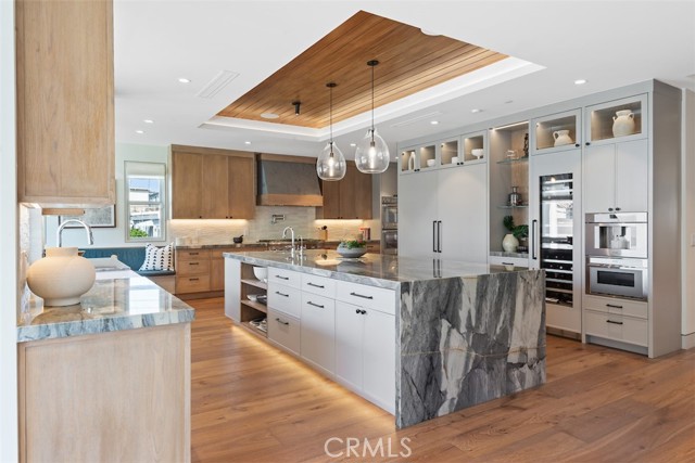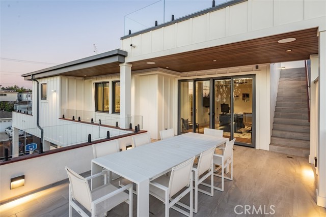 Welcome to this extraordinary custom estate perched in the Hermosa Hills and set on a large, flat corner lot - an exceptional rarity in Hermosa Beach, where modern design and coastal luxury meet. With 7 bedrooms, 7.5 baths, and over 7,800 square feet of impeccable living space, this home offers the best of coastal living: elevated design, breathtaking views and effortless sophistication. The architectural craftsmanship is unmistakable—an oversized pivot wood front door, wraparound front deck and an open-concept layout that seamlessly blends indoor and outdoor living. A dramatic glass-encased elevator serves as a sculptural centerpiece, connecting each level with ease. The main living area features a stone fireplace, wood-detailed ceilings and folding glass walls that open to an entertainer’s dream: a covered outdoor pavilion with kitchen pass-through, bar seating, pool and spa, fire pit and built-in lounge seating—all enhanced by custom lighting for an inviting nighttime ambiance. The gourmet kitchen is both functional and beautiful, showcasing a waterfall island of natural stone, designer backsplash, custom cabinetry and a cozy built-in breakfast nook. A formal dining area and multiple living spaces offer room for gatherings large and small. Upstairs, the primary suite is a serene retreat with a private terrace, marble-clad bath, soaking tub, and adjacent office with its own ocean-view patio. The lower level is pure leisure—complete with a full bar, movie theater, game room, and home gym. Every detail has been curated for luxury living: custom railings, designer fixtures, home automation, sound and theater systems throughout, security cameras, a full water filtration system and a four-car garage with built-in storage.