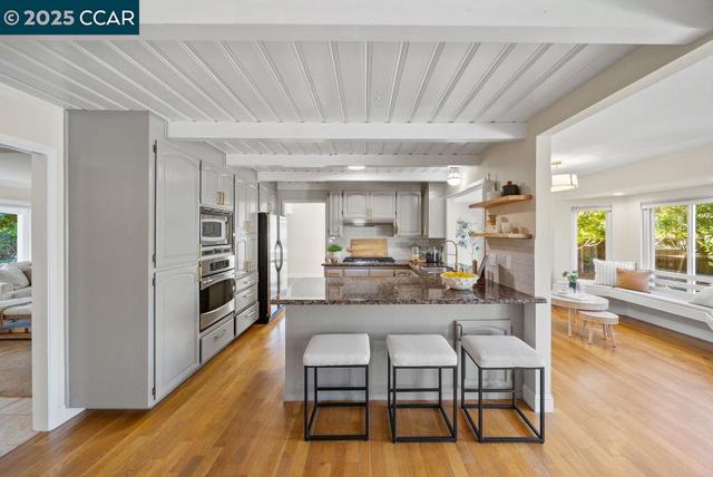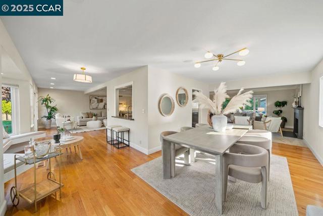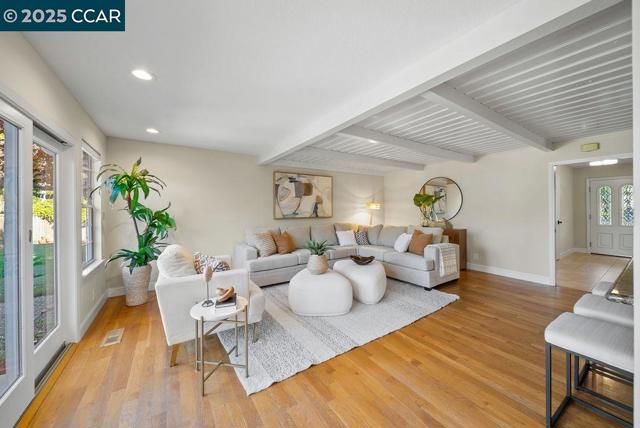 This inviting 4-bedroom, 2-bath home offers approximately 2,060 square feet of comfortable living space on a flat 0.23-acre lot in a desirable Moraga location, situated in a neighborhood with wide, flat streets. Inside, natural light sets an easy tone, with an intuitive layout that connects the main living spaces to the outdoors. The kitchen opens toward the family and dining areas, creating a relaxed flow for daily life and entertaining. The freshly updated primary bath adds a touch of everyday luxury, while three additional bedrooms offer flexibility for guests, work, or play. Outside, a large flat lawn pairs with a spacious patio—plenty of room for outdoor entertaining, a play structure, or gardening. Close to 9 years of Moraga's highly regarded schools, parks/dog parks, trails, and recreation, the home blends comfort with convenience in a way that feels effortless.