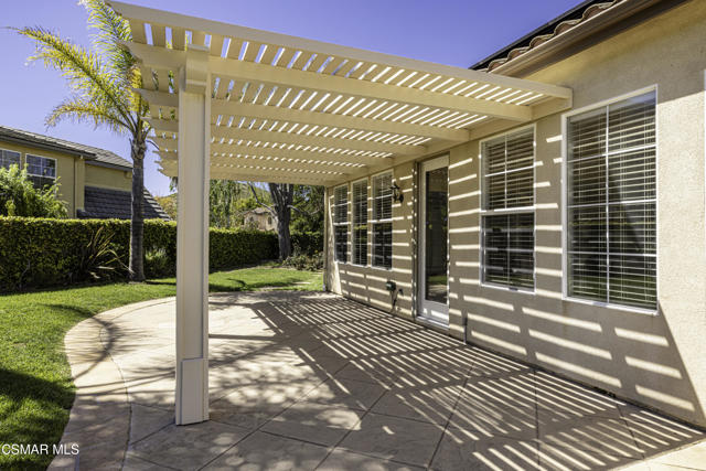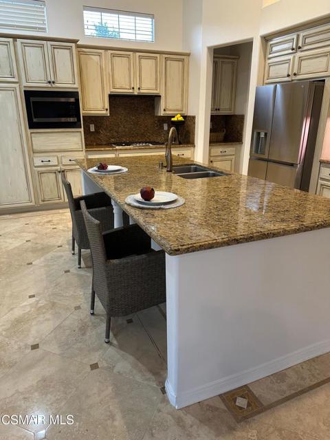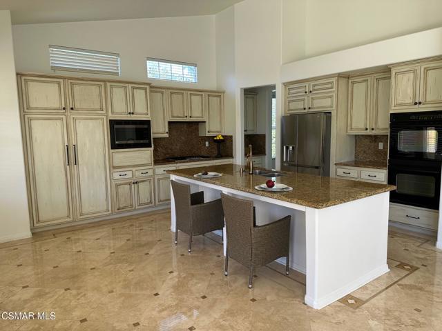 Enter into the 24 hour guard gated community at Woodridge Estates and you step into a calm, lush setting surrounded by beautiful hiking trails and stunning mountain views everywhere. This beautiful newer single-story home with an additional loft area is a true find. This 3,100 sq. ft. home features owned solar panels, an oversized grassy yard, a perfectly placed in ground spa, with a stunning location on the view side of the street. The primary suite with one potential bedroom is on one side of the house with the other two bedrooms with a jack & jill bathroom and powder room on the other. The spacious living space offers a formal living room, office/study area, formal dining room, and a large kitchen that opens to the family room. The high ceilings of this newer home make the home feel even larger than 3100 sq. ft.. The lot size is unusually large for Woodridge Estates and offers so many enjoyment options. Centrally located in Thousand Oaks close to schools, dining and shopping.