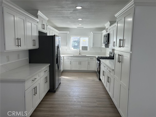 Beautifully remodeled 3-bedroom, 2-bathroom residence located on a quiet cul-de-sac. This home features an open and inviting layout with new laminate flooring throughout. The remodeled kitchen offers new cabinets, quartz countertops, and new stainless steel appliances. Both bathrooms have been tastefully updated. The bedrooms include new mirrored closet doors and recessed lighting throughout home. It also includes an atrium that provides extra lighting. Enjoy a spacious backyard with lots of fruit trees-ideal for entertaining or relaxing-plus a storage shed for added convenience. The home also includes a 2-car attached garage and RV parking. Conveniently located near freeways, schools, shopping, and restaurants. A must-see property that’s move-in ready.