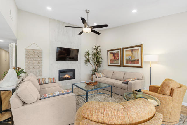 Tastefully Remodeled Chaparral Country Club Gem!Experience refined desert living in this beautifully remodeled 3-bedroom, 2-bath condo offering 1,950 sq. ft. of open, elegant design. Thoughtfully reimagined, the renovation includes the removal of interior walls to create a bright, expansive living area, a stunning new kitchen with premium finishes, and two luxurious, spa-inspired bathrooms--all crafted with exceptional quality.Enjoy breathtaking northwest views across two lush fairways, framed by graceful palms and majestic mountain backdrops. Nestled within the highly desirable Chaparral Country Club, residents enjoy exclusive amenities including golf, tennis, pickleball, a state-of-the-art fitness center, and a full clubhouse with dining, cocktails, and a vibrant social calendar.Located just minutes from the famed El Paseo shopping and dining district and a short 25-minute drive to Palm Springs Airport, this home perfectly blends convenience and luxury. The property includes a full two-car garage, an additional golf cart garage, and even a golf cart--ready for your next round! Offered partially furnished, this exceptional home invites you to enjoy the very best of desert living. Come see for yourself--your desert experience couldn't be more perfect!