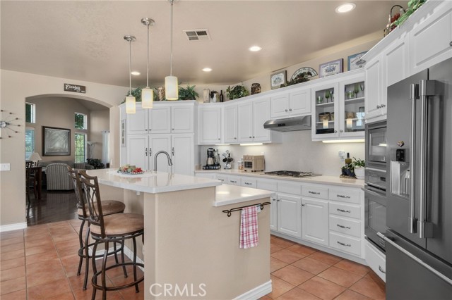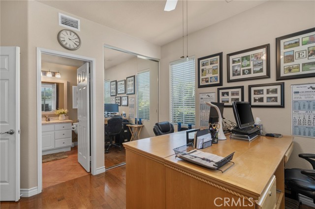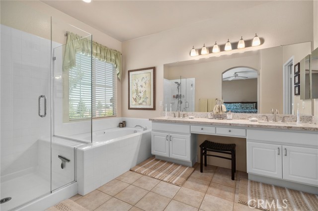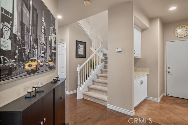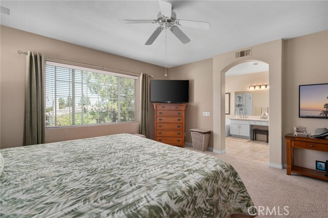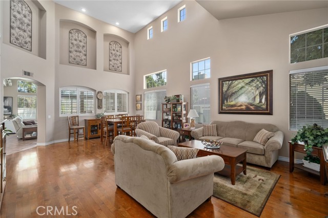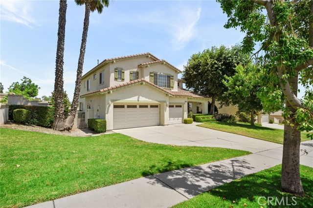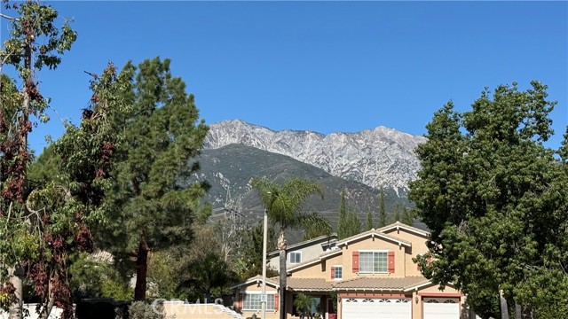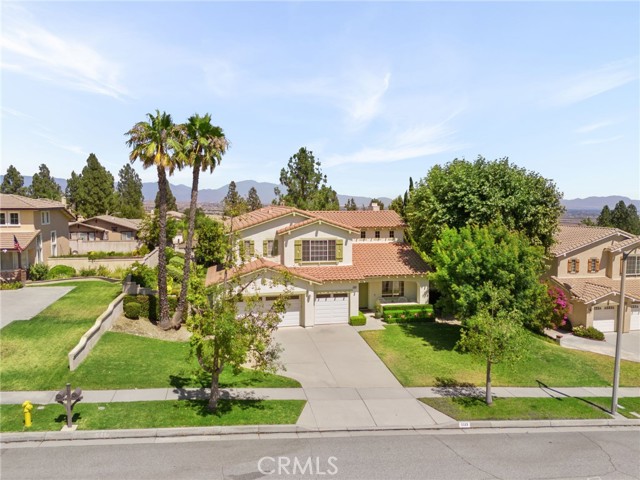 Nestled on a serene cul-de-sac with stunning mountain views and exceptional curb appeal, this beautiful home in the highly sought-after Ridgeview Estates of Rancho Cucamonga combines thoughtful design with elevated living. Beyond the welcoming front porch lies 2,871 square feet of beautifully appointed space featuring hardwood flooring, an abundance of natural light from a wall of windows, and soaring 20-foot ceilings. The layout is both elegant and functional, with 5 spacious bedrooms and 3 upgraded full bathrooms, including a versatile main-level bedroom with double-door entry and ensuite bath, ideal for guests, a home office, or multigenerational living. The formal living and dining rooms are both tasteful and grand, highlighted by dramatic ceilings and generous space for entertaining or intimate gatherings. At the heart of the home, the upgraded kitchen showcases Corian countertops, an oversized island, stainless steel appliances, generous storage and custom lighting for enhanced ambiance. The kitchen and breakfast nook flow seamlessly into the large family room, warmed by natural light and a cozy fireplace, perfect for relaxing evenings. A privately situated staircase leads upstairs to the expansive primary suite, where understated elegance meets serene city-light views. The ensuite bath offers upgraded Quartz countertop vanities, a soaking tub, walk-in shower, and a large walk-in closet. Three additional bedrooms, each with ceiling fans, a full hall bath, and a custom built-in shelving niche, complete the upper level. Step outside to the well maintained backyard, with lush mature landscaping, including grapevines ready to harvest, block wall privacy, and a sparkling hot tub for relaxing under the stars. Multiple seating areas provide plenty of space for outdoor dining, BBQs or quiet evenings enjoying mountain views. Additional highlights include an extended driveway, a three-car garage with abundant storage, newer water heater, newer carpet, QuietCool attic fan, main floor laundry with sink and built-in cabinetry for extra storage, shed and no HOA. Perfectly located near award-winning schools, Day Creek Park, scenic trails, and Victoria Gardens for premier shopping, dining and entertainment, this home seamlessly blends luxury, comfort, and timeless style one of Rancho Cucamonga’s most desirable neighborhoods. Come see why this home isn't just beautiful, its thoughtfully designed for the way you live every day.