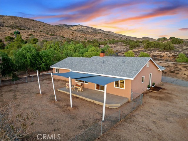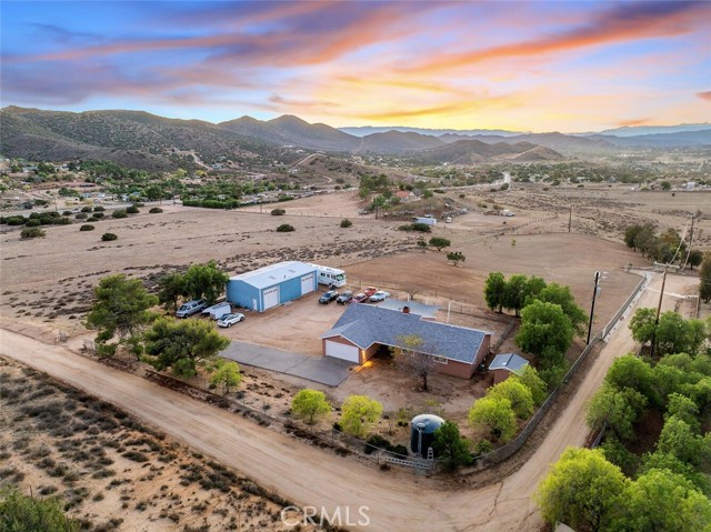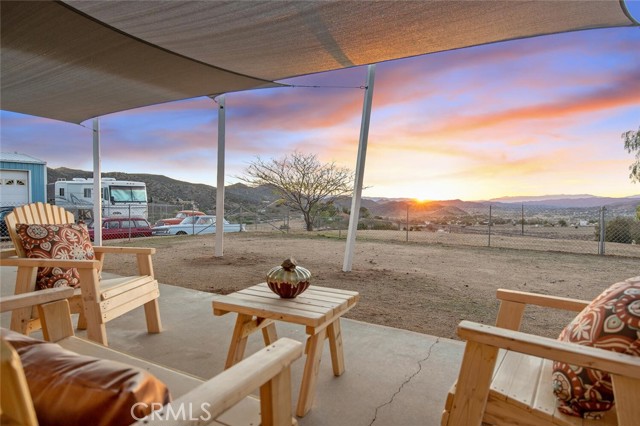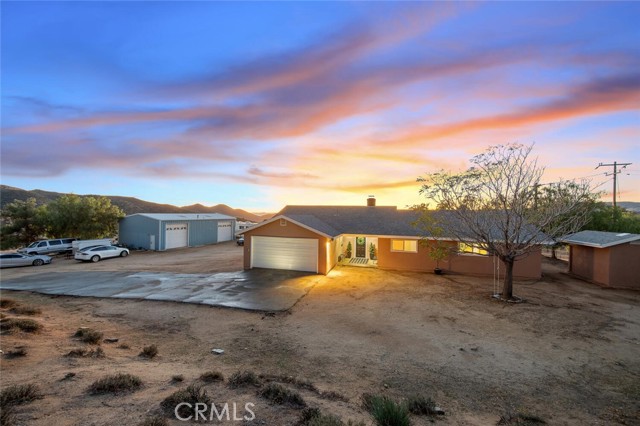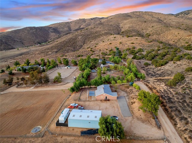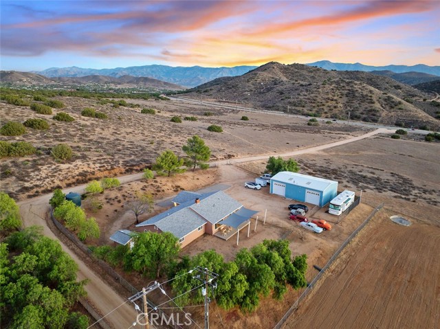 RARE & UNIQUE...INCREDIBLE OPPORTUNITY TO LIVE IN AGUA DULCE WITH THE BEST VIEW FOR UNDER $750K, 4+2 ONE STORY home with approximately 1,800 square feet PLUS A PERMITTED 1,500 SQ FT STEEL 'BARN' AKA WORKSHOP OR GARAGE with concrete slab, red iron beams and super-sized roll up doors to EASILY park your RV, there is even climate control, and other desirable crafty features to where you never have to leave your projects, it's all self contained! Directly behind taking in the view is an RV 'pad' to park a motorhome with a view. The most breathtaking sunsets and mountain peak views ever, all on approximately (mostly flat) one acre lot. Enjoy cool breezy weather sitting beside your very own massive wood burning fireplace with brick hearth seating while gazing out the living room window one of the most spectacular view vantage points in the entire area. The galley kitchen is open to the formal dining area, breakfast nook, and there is even a light breakfast bar to hang out with guests while cooking. Down the hall, there are four bedrooms, a hall bath with a high quality wood vanity and granite counter, and the primary bath has been updated with a warm hued cinnamon vanity with double bowl sinks and quartz counters, updated lighting, mirrors, tile shower and floors. Light grey shingle roof, large concrete patio, and dual paned windows. Fresh exterior paint. It is quite the cute home, sustainable, manageable, and ZONED A21!!!! Just off the beaten path of Sierra Hwy, a one minute drive up the private dirt road to absolute serenity and tranquility. The location is private, and perfectly situated, only a couple of minutes to the 14 fwy and a short drive to either downtown Acton or Agua Dulce! Tons of OHV or horseback riding trails abound! Don't miss your opportunity to move to Agua Dulce! Home to wineries, horse lovers, nature lovers and off road enthusiasts! Welcome to country living without PROPANE...this home is one of the few homes in Agua Dulce that are on natural gas. There is also a PRIVATE well with a 4,000 gallon water holding tank. Come take a look!