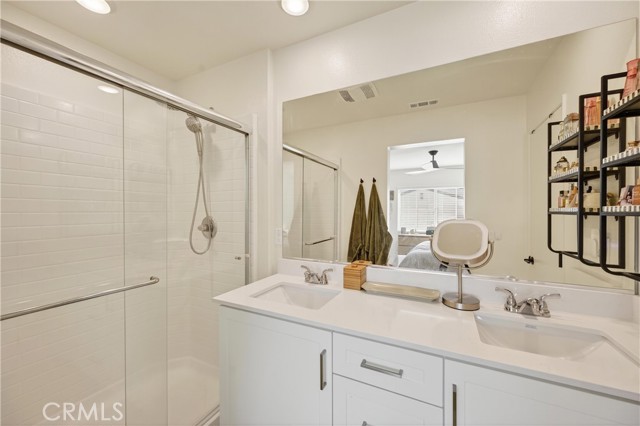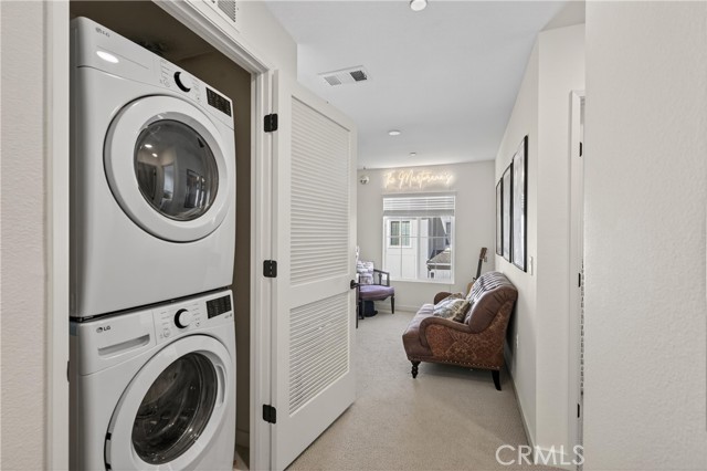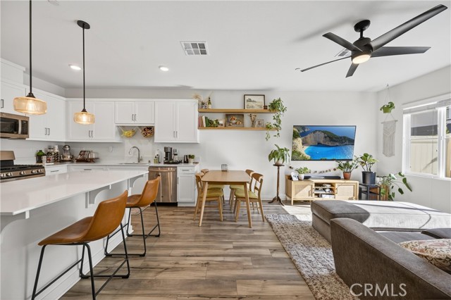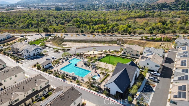 PAID OFF SOLAR, TESLA charger included in garage!! ALL Appliances including Stackable washer & dryer & refrigerator all like NEW. Stunning modern residence with clean feel offering two bedrooms 2 1/2 baths plus a LOFT/DEN that can be closed off if desired and two car garage. No where else you will find this newer designer model like home at such a great value. Upgraded, WPC, tile & Carpet flooring. Clean white upgraded cabinets with soft close drawers & doors with upgraded handles, light quartz countertops with 6" backsplash adoring the super comfortable kitchen with upgraded stainless steel appliances-including double oven convection range, deep sink with pull down handle and dine in island with hanging pendent lights. All bathrooms have upgraded quartz countertops. Bed 2 with Mirror wardrobe & upgraded hardware throughout home. Ceiling fans in Master bedroom & living room. Outdoor patio is ready for a cool relaxing evening. The fun pool/jacuzzi area with BBQ station and massive party room with fireplace, large TV and a nice bar is not to far away. Citro Community is perfectly positioned between San Diego, Orange County and Temecula areas with easy access to 15 and 76 freeways. Its natural beauty with rolling hills, gorgeous sunrises and sunsets, year round breezes, long walking trails and easy access to fresh produce makes it a modern community. VA and FHA approved.
