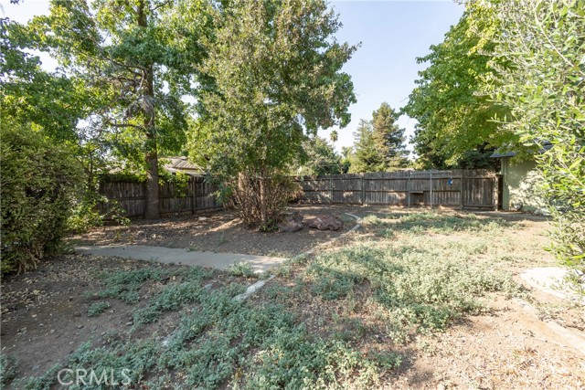 MOTIVATED SELLER! HALF ACRE LOT! So much opportunity in this well-sized mid-century home set on a generous lot in a peaceful Chico neighborhood! With three bedrooms, three baths, and nearly half an acre of land, you will find space, comfort, and the opportunity to make this your own! A concrete pathway lined with lavender and mature trees leads to a brick front porch. Inside the front door you will see french doors leading to a living room or reading room. The hall to the right leads to an open kitchen with updated appliances and dining room. Step down into a family room with a fireplace and built-in bar. Sliding glass doors open to a sun room, then to a sizable back yard with a pool. The yard is spacious with room for fruit trees and plenty of space for entertaining. Back inside, a hallway leads to three bedrooms, one with back yard access. Not to mention the garage with storage space, a small office, and fenced in side yard with RV sized gate access. This home has the potential to be your paradise in a coveted Chico neighborhood!