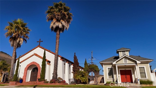 Welcome to this desirable Chapel by the Sea , called The Pearl Chapel. It is in the heart of Shell Beach. It encompasses 1800 Square feet . It is full of charm and character. It has hardwood floors throughout and a stage. As you walk in , you will find two beautiful restrooms on each side and a foyer that leads to the sanctuary. To the left of the stage is a room with a fridge, cabinets for storage and a sink for food preparation. On the right of the stage is an area for storing supplies and equipment . The chapel comes with chairs and a handmade podium. There are warm colored stringed lights that light up the room from the beams that are appealing as well. Included in the sale of the chapel is the adjacent property next door. It is an original schoolhouse from 1850 that was remodeled and converted into a home. It has a separate APN#, utilities and address. It has 2 bedrooms 1 bathroom and is 1021 square feet . It also has hardwood floors, and an open floor plan that has high ceilings. Through the French doors coming from the dining room leads you to a patio area that is wonderful for gatherings and BBQ's. On the back side and on the right comes with two sheds for storage. Inside one of the bedrooms comes with a Murphy bed that will remain in the schoolhouse. These two properties are being sold together. These properties are within a short walking distance to the Ocean.