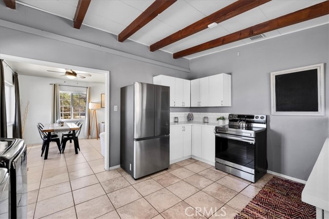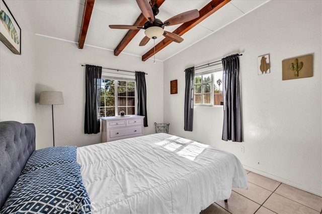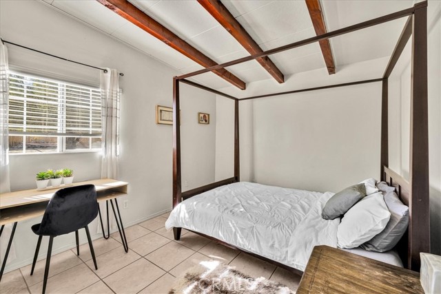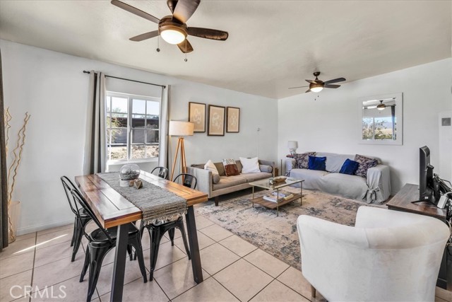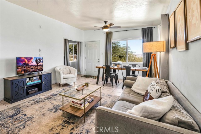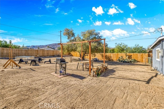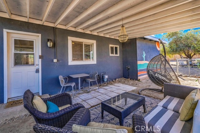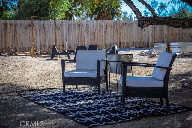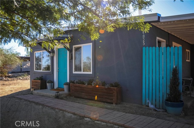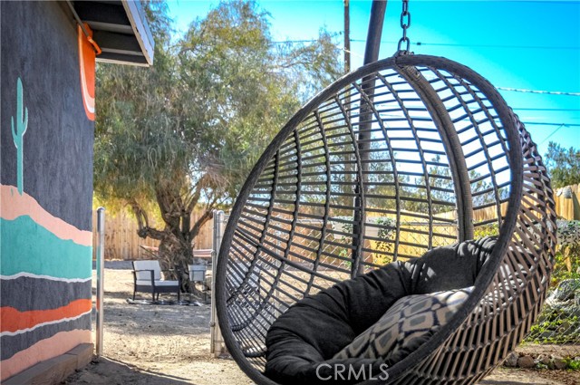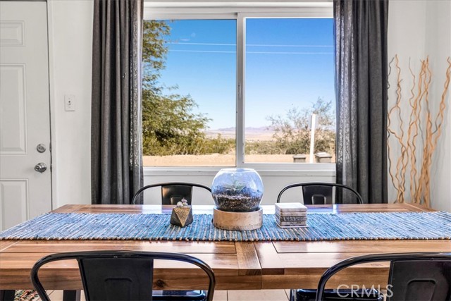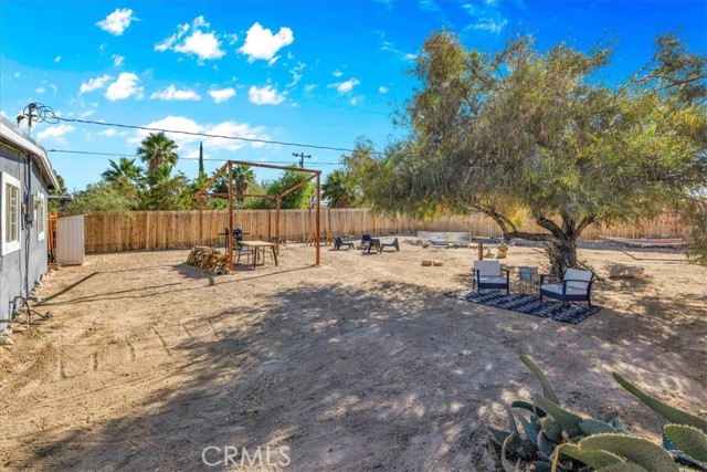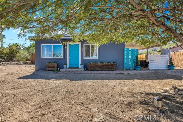 Location Perfect! Only 3.5 miles to the entrance gate of the Joshua Tree National Park, and mere minutes to Downtown 29 Palms, you will enjoy both nature and convenience at your doorstep. As a long-time, successful vacation rental, this home has consistently generated income while providing guests with a memorable desert getaway. Whether you are looking for a personal desert retreat, a proven vacation rental investment, or both, this property offers the perfect blend of comfort, style, and unbeatable location. The yard is a peaceful haven, featuring mature desert landscaping and panoramic views of the surrounding desert and mountains—offering breathtaking sunrises and sunsets. The expansive, private backyard is an entertainer's dream, featuring the iconic cowboy pool, multiple seating areas, a new storage shed, and a large desert willow tree whose shade will be everyone’s favorite gathering spot. Inside, the home has been tastefully improved to provide a bright, airy, and welcoming atmosphere. The open Livingroom and dining area boast a ton of natural light, with tile flooring, upgraded, energy-efficient windows, and ceiling fans throughout. The kitchen has been updated but still retains its rustic charm. Newer cabinets are complimented by quartz countertops, a large chef’s sink, and stainless-steel appliances. Both bedrooms offer a cozy retreat with wood-beamed ceilings, large windows, and ceiling fans to keep things comfortable year-round. The Bathroom has been stylishly completed in a dark, contrasting, matte finish porcelain tile and a compact vanity to maximize space. The convenient indoor laundry area is a bonus and outfitted with a new washer and dryer set. The crowning jewel and best protection for your investment is the new roof that was installed this past Spring! Whether you’re hitting the trails of Joshua Tree National Park for world-class hiking, rock climbing, or stargazing, or enjoying the delicious local cuisine just minutes away, this property’s location is unbeatable. The park's stunning desert landscapes, wildlife, and iconic rock formations are right at your doorstep, making this home a prime spot for nature lovers and outdoor enthusiasts. Do not miss your chance to own a slice of desert paradise! This lovely Home can be sold turn-key furnished! Inquire about details. Schedule your viewing today!