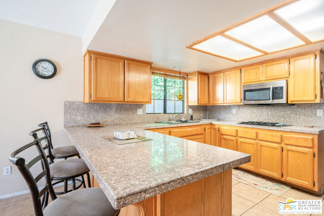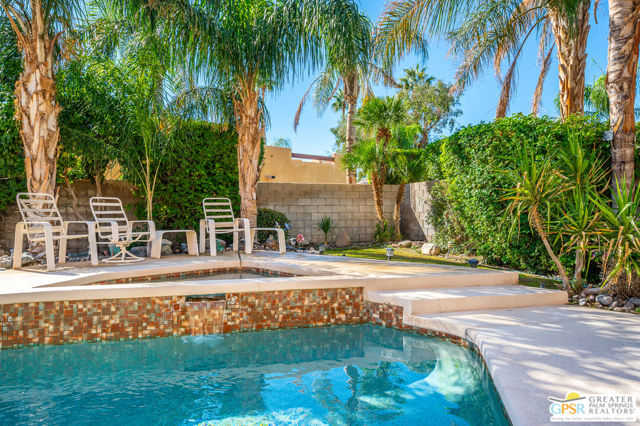Ideally situated in Cathedral City's sought-after Panorama neighborhood, this home presents a rare opportunity to enjoy resort-style living at a incredible value price. This 1,971 sqft residence features three spacious bedrooms and two bathrooms, thoughtfully designed for comfort and functionality. The inviting sunken living room creates a warm, conversational atmosphere, while large windows invite soft natural light. The kitchen and living spaces flow seamlessly for easy entertaining. Step outside to a private backyard oasis with peek-a-boo mountain views and a saltwater PebbleTec pool and spa, perfect for enjoying the desert sunshine. Recent upgrades include a newer A/C (2020) and hot water heater, adding peace of mind to its timeless appeal. A two-car garage provides ample storage and convenience.