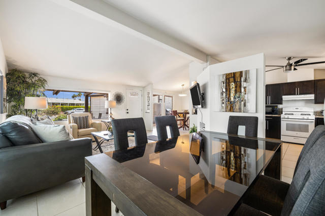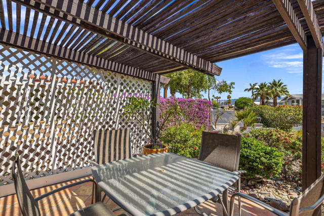 Great opportunity to live in a Guard Gated Fee land Community with beautiful golf courses.... Golf is free with home ownership.This amazing home has granite countertops in newer, remodeled Kitchen with Center Island, and stainless steel appliances. There is also a kitchen area. dining area and a formal dining room. This home has two bedrooms, 2 remodeled bathrooms, multiple sliding glass doors with interior blinds, new HEAT and AIR CONDITIONING was just installed in October.This home has both front and back patio areas for privacy and entertaining. a rare two car garage plus golf cart garage are on this property for all of your storage needs....Vaulted ceilings in both bedrooms and living room made this home very light and bright.This community offers Restaurants, golf, tennis, swimming pools, playgrounds, pickleball courts and beautiful work out facilities. Best of all HOA includes basic cable for TV and internet.Property is being sold furnished...