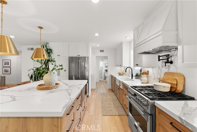You don’t want to miss out on this stunningly updated College Estates home in one of the most sought-after pockets of Long Beach. This four-bedroom, two-bathroom home leaves nothing left to be desired, thoughtfully renovated from top to bottom with luxury Cortec laminate flooring, designer finishes, and a seamless open-concept layout ideal for everyday living and effortless entertaining. At the heart of the home is an entertainer’s dream kitchen that opens effortlessly into the family room and dining space. Thoughtfully reimagined, the kitchen boasts a six-burner range with a pot filler, a farmhouse sink, custom cabinetry, and a built-in wine fridge. The oversized dining room is the perfect place to gather. Whether you’re hosting holidays, birthday dinners, or Sunday brunch. The open floor plan flows beautifully into the backyard, allowing the indoors and outdoors to live as one, truly embodying the California lifestyle. With four spacious bedrooms and two fully renovated bathrooms, this home offers flexibility for families, work-from-home needs, or guest accommodations. Every space has been upgraded with care, style, and quality—including a brand new roof and new insulation. Located just one block from the local neighborhood park, this is ideal for morning dog walks, playtime with the kids or unwinding under the trees. And the convenience is unmatched — quick freeway access puts you just minutes from Belmont Shore, Seal Beach, and the restaurants and boutiques at 2nd & PCH. This home checks every box: style, function, location, and lifestyle. A rare opportunity in one of Long Beach’s most desirable neighborhoods. It will not last long!