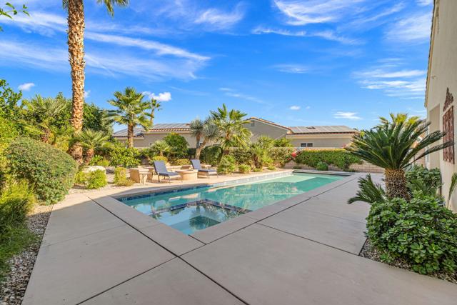 Situated at the end of a quiet cul-de-sac in the heart of Palm Desert, this fully furnished home offers an ideal blend of comfort, privacy, and convenience. Featuring a versatile fourth room perfect for an office, den, or optional bedroom, this residence adapts beautifully to your lifestyle needs.Step inside to discover thoughtfully curated interiors, sold furnished with pieces that showcase impeccable taste and modern desert style. The open-concept layout is bright and inviting, ideal for relaxing or entertaining guests.Outdoors, enjoy a gorgeous private retreat with a remodeled pool and spa, surrounded by lush landscaping, multiple seating areas, and a firepita"perfect for soaking up the desert sun or enjoying peaceful evenings under the stars.Located in a central Palm Desert community that's close to world-class golf, shopping, dining, and entertainment, this property combines resort-style living with everyday convenience.A rare opportunity to own a move-in-ready desert getaway in one of Palm Desert's most desirable and peaceful locations.