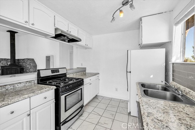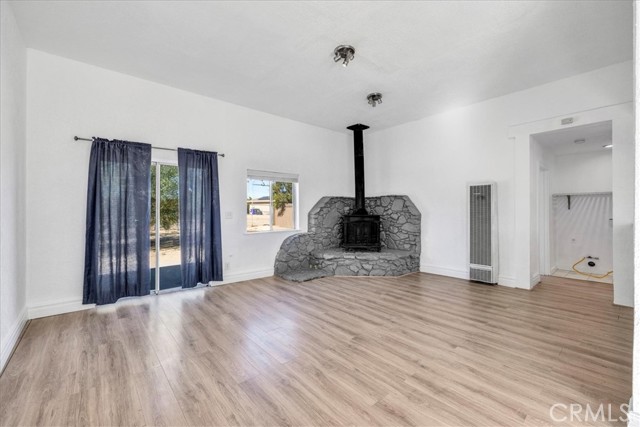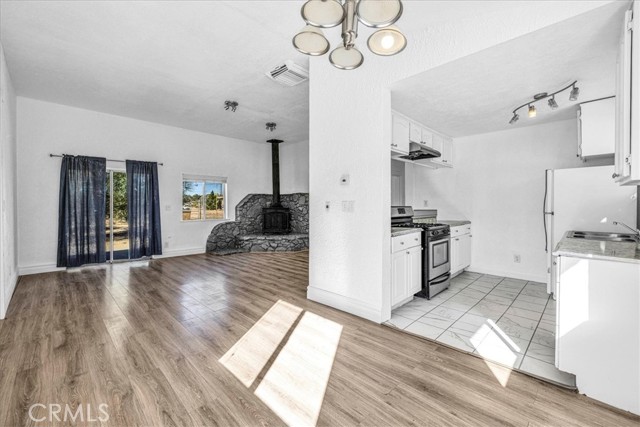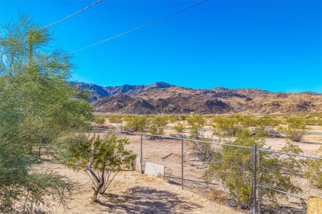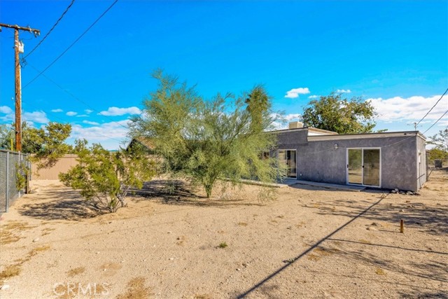 Centrally located in the Smoke Tree area of 29 Palms, this inviting 2 bedroom, 2 bath home offers comfort, charm, and convenience with thoughtful updates and plenty of space to enjoy desert living. The property is fully fenced and features a paved driveway with a large shade tree welcoming you home. Inside, the spacious living room features wood-look flooring, modern light fixtures, and a cozy wood stove set on a rustic hearth designed to resemble natural stone. Large windows and a sliding glass door fill the space with light and provide easy access to the backyard. The layout flows into the dining area and updated kitchen, which includes tile floors, a tile backsplash, a gas stove, dishwasher, and a breakfast bar for casual dining. The primary bedroom is comfortably sized with its own sliding glass doors to the backyard and an attached bath with a tub/shower combo. The second bedroom also offers a sliding glass door for direct outdoor access, making both rooms bright and airy. The guest bath features a walk-in shower with glass doors. Additional highlights include indoor laundry hookups and a spacious backyard, offering plenty of room to relax or entertain under the desert sky. Located just minutes from the entrance to Joshua Tree National Park, with its convenient location, updated interior, and inviting layout, this home is a great opportunity in a desirable part of 29 Palms.