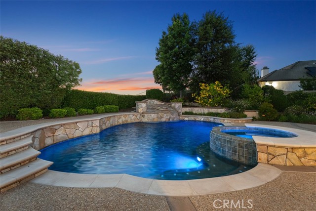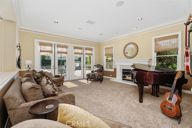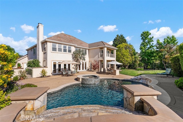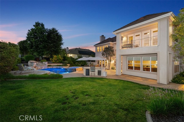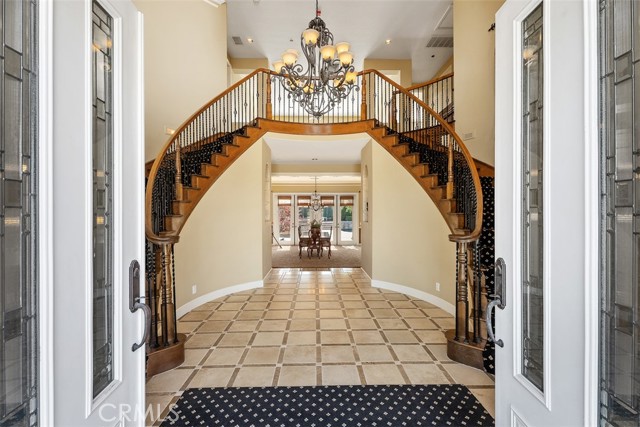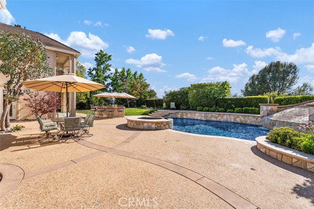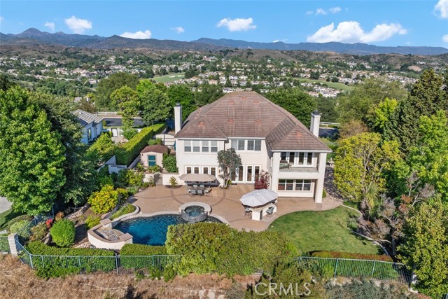 Welcome to 87 Panorama in the highly sought-after Pinnacle community on one of the most coveted streets in Coto de Caza. This exceptional estate with stunning curb appeal boasts the largest floorplan in the neighborhood at 5,449 sq ft. With 5 spacious bedrooms (1 downstairs), 5 bathrooms, large bonus room, office, and 4-car garage, this home is built for both comfortable everyday living and elegant entertaining. Step through the front door to soaring ceilings, an impressive dual staircase, and expansive windows framing the serene 360* mountain and valley views. The formal dining room and living room both open through sets of French doors, offering seamless indoor/outdoor flow. The updated gourmet kitchen is a chef’s dream, updated with top-tier appliances including a Viking range with 6-burner cooktop and griddle, Viking warming oven, built-in refrigerator, and a water filtration system. A massive center island with seating, walk-in pantry, built-in desk nook, and expanded eat-in dining area all open to the oversized family room. This builder-upgraded space features a stone fireplace, 80" 3D-capable TV, and a custom bar area with Thermador beverage fridge and ice maker—perfect for entertaining. Dowstairs also offers a private office/den, and a guest bedroom with full ensuite bath—ideal for multigenerational living. Upstairs, a spacious bonus room makes a perfect media or game room. One secondary bedroom has its own bathroom, while two others share a Jack and Jill layout. The opposite wing is dedicated to the luxurious primary suite with private balcony with mountain views, cozy sitting area, two walk-in closets, and a spa-like bath featuring dual vanities, two individual lavatories, a soaking tub, and a walk-in shower. The backyard is truly an entertainer’s dream, designed with multiple outdoor “rooms” for every occasion. The centerpiece is a sparkling pool and spa with waterfall and newly resurfaced Pebble Tec bottom. Enjoy the built-in bar with available beer tap and fridge, or relax in the side yard retreat with BBQ, quiet seating, and a fountain—set against sweeping views of the Coto Valley. On the opposite side yard, a former boat storage area is now a home gardener’s paradise with raised vegetable beds and a storage shed. From lively gatherings to tranquil mornings, this remarkable property offers it all. Residents enjoy access to world-class golf, tennis, equestrian facilities while having the security of a 24/7 gate guarded community.