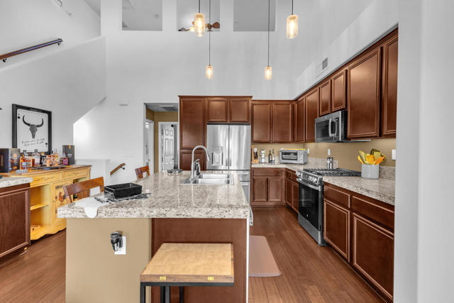 Beautifully maintained 2 bed, 3 bath split-level condo in the gated community of Monterey Ridge. This spacious home features an open-concept main level with high ceilings, natural light, and a well-appointed kitchen with granite countertops, stainless steel appliances, and ample storage. The primary suite is privately located on the upper level with a walk-in closet and ensuite bath. A secondary bedroom and full bath are on the lower level, ideal for guests or family. Upstairs, a versatile flex space offers the perfect spot for a home office, workout area, or reading nook. Enjoy an attached two-car garage, in-unit laundry, and access to the community pool and spa. Conveniently located near shopping, dining, and everyday amenities.Seller is offering a $5,000 credit toward closing costs or rate buy-down!
