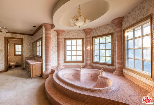 Great value, rare fixer opportunity offering over 5,500 sq. ft. of living space situated behind the gates in the prestigious Westchester County Estates. Featuring five bedrooms and five baths, this home presents generous scale, soaring ceilings, and a floor plan ready to be reimagined. A grand entry opens to formal living and dining rooms, a spacious kitchen footprint, and expansive family areas with abundant natural light. The large primary suite includes a sitting area, spa-style bath, and walk-in closets. Outside, the private grounds feature a pool, spa, and plenty of room for entertaining. Set in one of Woodland Hills' most coveted gated enclaves, 4456 Vanceboro Court is perfect for those looking to renovate, restore, or design their dream home in an exceptional location close to top-rated schools, shopping, and Ventura Blvd.