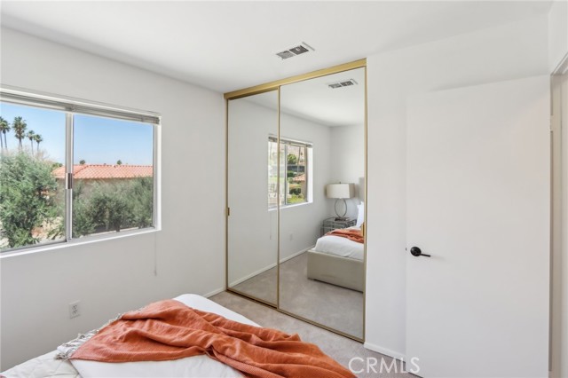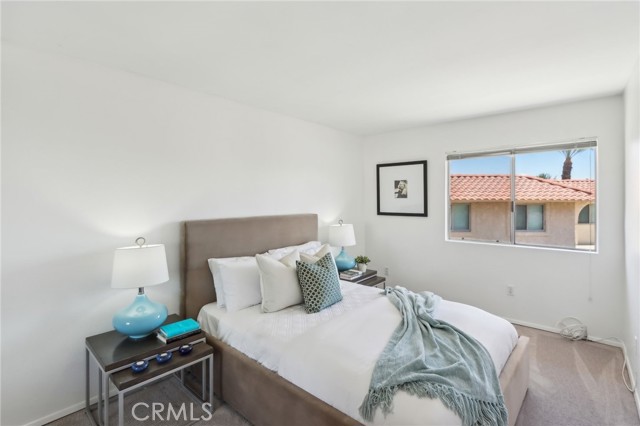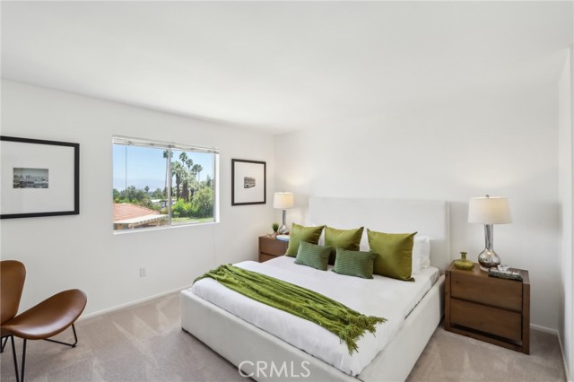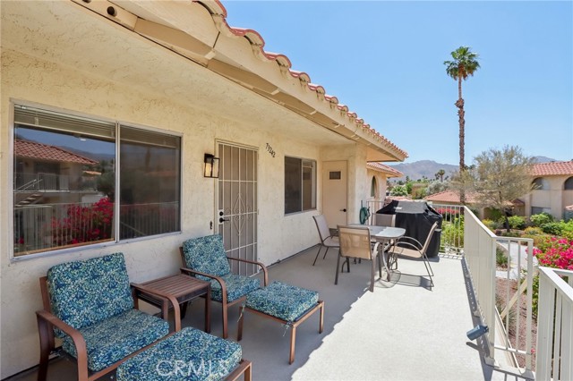 Welcome to Deep Canyon Tennis Club, an inviting gated community where each street is named after tennis legends. With 350 units, you’ll find a vibrant neighborhood featuring 12 tennis courts, 6 pickleball courts, bocce ball, a putting green, and a fitness center. There are also 12 pools and 4 spas, plus plenty of green space for relaxing or walking. Social activities abound, including bridge, hiking, yoga, and book clubs. This comfortable 3-bedroom, 2-bathroom upstairs condo has just been freshly painted white inside and features brand new carpet throughout, giving it a bright and clean feel. This unit is turn key, making it perfect for full-time living, part-time getaways, or as a seasonal rental—these condos are known to be great for generating income. It’s just steps from the pool and tennis courts, with a lovely front balcony for outdoor dining. You'll appreciate the convenient in-unit washer and dryer, ample closet space, and a well-appointed kitchen and dining area. Updated photos coming soon. Plus, you’re within walking distance of El Paseo, known for its upscale dining, art galleries, and shopping. Don’t miss out—come see this hidden gem and embrace the Palm Desert lifestyle!