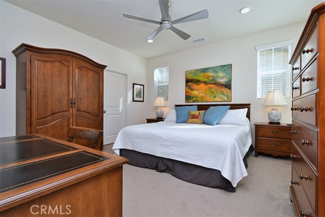 Stop Looking and Start Packing! This smart home has it All! Only 3 years old with nearly $100K in upgrades which includes Owner paid-in-full Solar with 14 panels screams true Pride of Ownership. Located in the Master Planned community of Harvest at Limoneira, this 4 Bedroom, 3.5 Bath home has an Open concept floorplan with loads of natural light. Formal Entry leads to center island Kitchen with granite counters, stainless GE Profile appliances, a walk-in Pantry and an adjacent Butler's Pantry with lots of storage. Enjoy your morning coffee with Mountain views from your Kitchen window or your Front Porch. Living room with soaring ceilings has recessed lighting, electric fireplace, Plantation shutters & an over-sized sliding glass door which leads to the rear yard perfect for Entertaining with your Weber gas BBQ. A low maintenance dream--Professionally designed rear yard has insulated Alumawood covered patio with wrap around interlocking pavers, raised planters and artificial turf in the side yard. Downstairs next-gen ensuite Bedroom with access to the front porch has its own full Bath is perfect for in-laws or guests. Additional separate Guest powder bath complete the downstairs. Upstairs generously sized Loft makes an ideal Family room. Primary suite includes its own Spa-like Bath with dual vanities, separate soaking tub and step-in shower plus a walk-in closet with built-ins and organizers. Two additional generous sized Bedrooms share the 3rd full Bathroom. Upstairs Laundry room with full-sized side by side LG Thin Q front load washer and dryer plus additional storage. Upgraded flooring includes warm toned laminate throughout the downstairs living areas and Berber carpet upstairs. Attached two car garage has custom built-in cabinets for added storage, a work bench, tankless water heater and a separate 220 EV charging outlet for your electric vehicle. Resort style Community includes Club house/Pool/Spa/Fitness Center/BBQ Area/Parks/Basketball/Soccer/Community Garden and more. Just minutes to Ventura Beaches and Shopping with easy access to the 101 and 126 Freeways.