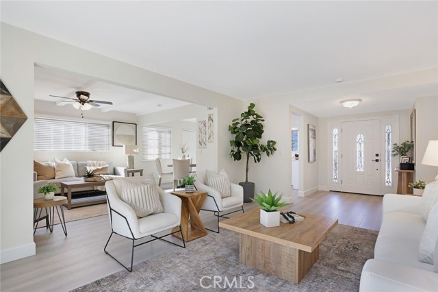 Excellent opportunity to purchase a model condition residence in a desirable Presidential neighborhood. This impressive single story home features 4 bedrooms, 2 bathrooms and a 2-car garage with epoxy floor. The interior is highlighted by a receptive living room, family room with fireplace and indoor laundry room. The remodeled kitchen has been upgraded with new counter tops, new cabinets and new appliances. The floor plan includes a primary bedroom with upgraded bathroom and shower and 3 secondary bedrooms which share a hallway bathroom. All new paint and upgraded flooring give this residence its finishing touches. The exterior features a concrete tile roof, a large rear yard with patio.